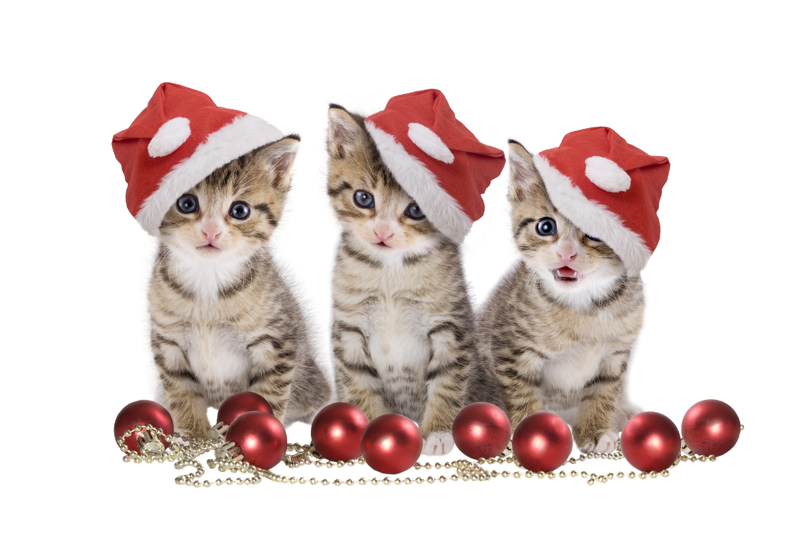 Edytor tapety: Trzy, Kotki, Mikołaje
