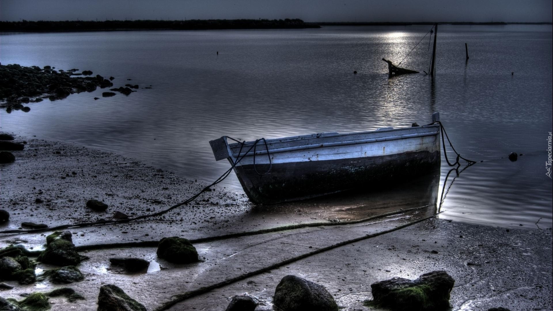 Edytor tapety: Jezioro, Kamienie, Łódka