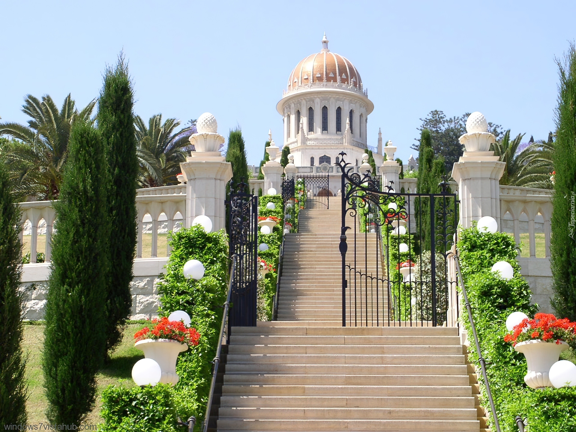 Edytor tapety: Ogród, Schody, Kwiaty