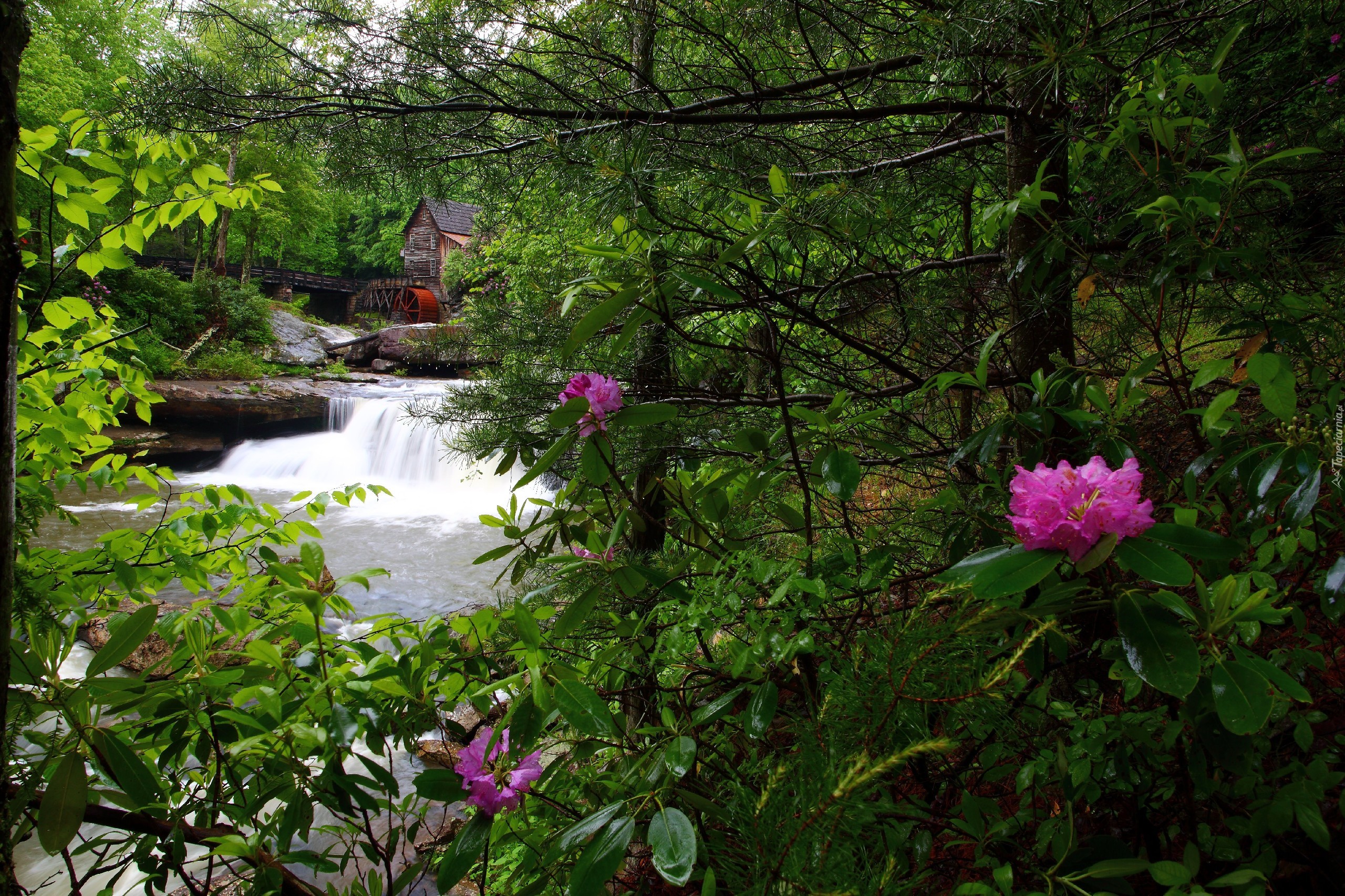 Edytor tapety: Młyn, Wodny, Wodospad, Rzeka, Roslinność