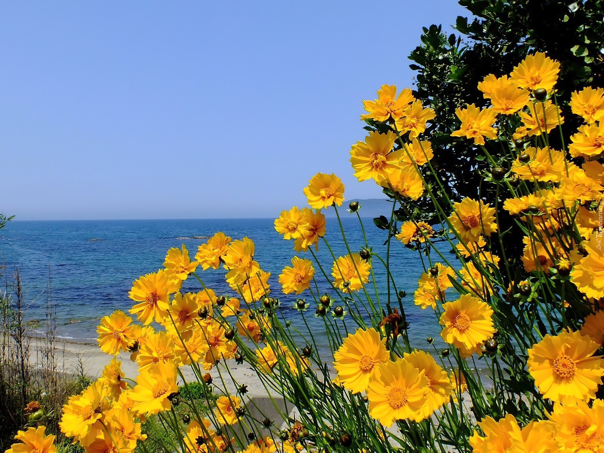 Edytor tapety: Żółta, Kosmea, Morze