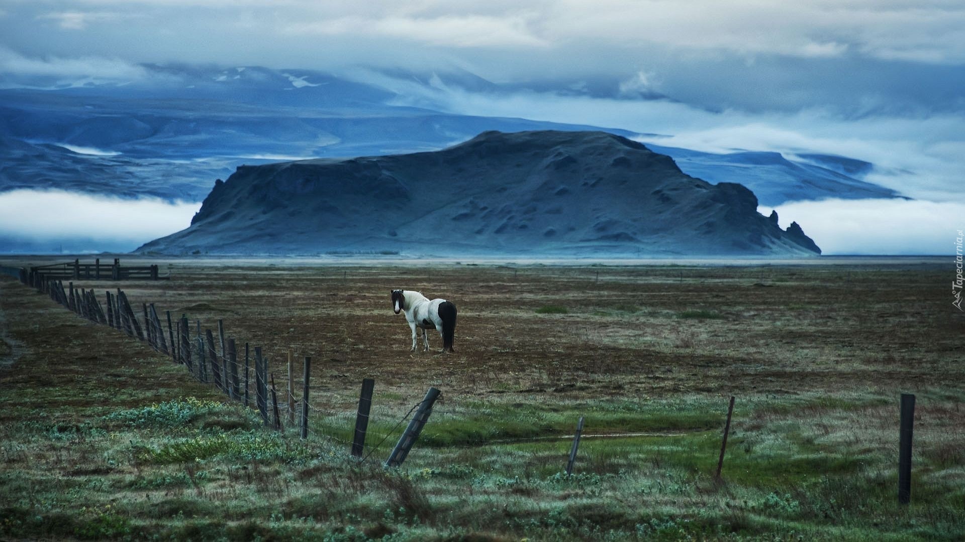 Edytor tapety: Koń, Zagroda, Chmury