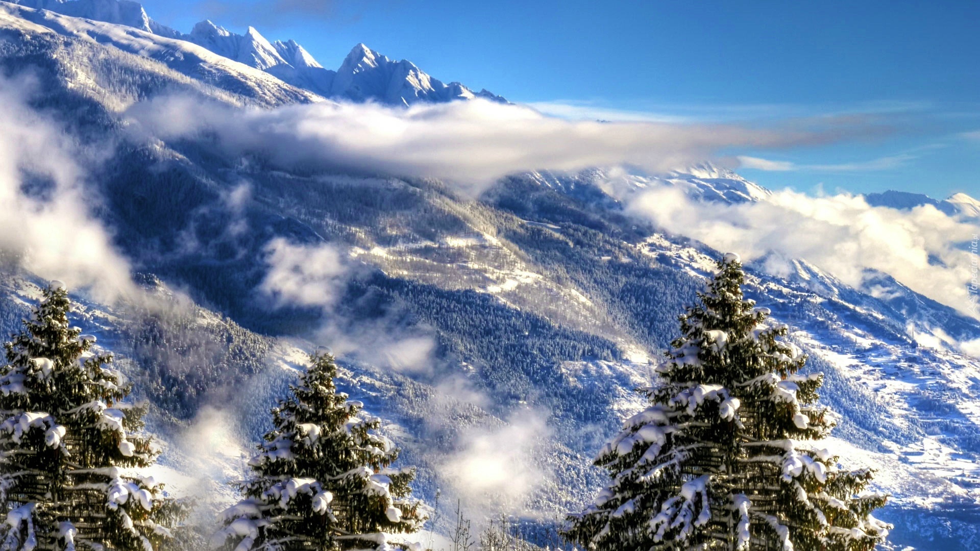 Edytor tapety: Skały, Chmury, Drzewa, Śnieg, Zima