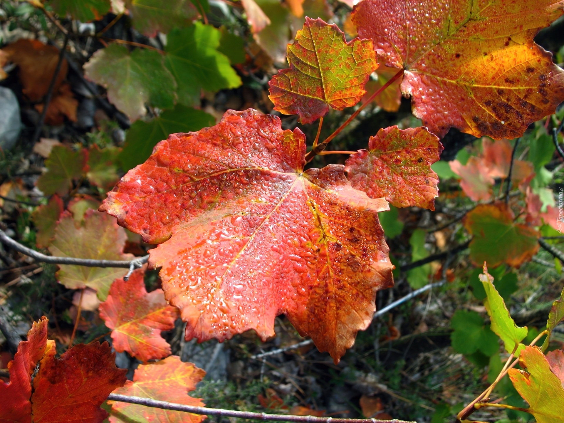 Edytor tapety: Kolorowe, Liście, Jesieni, Kropelki, Wody