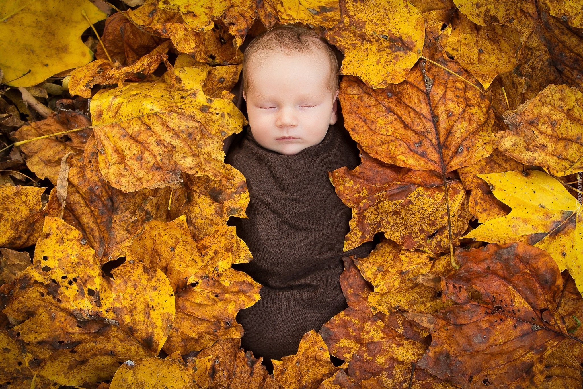 Edytor tapety: Małe, Dziecko, Jesienne, Liście