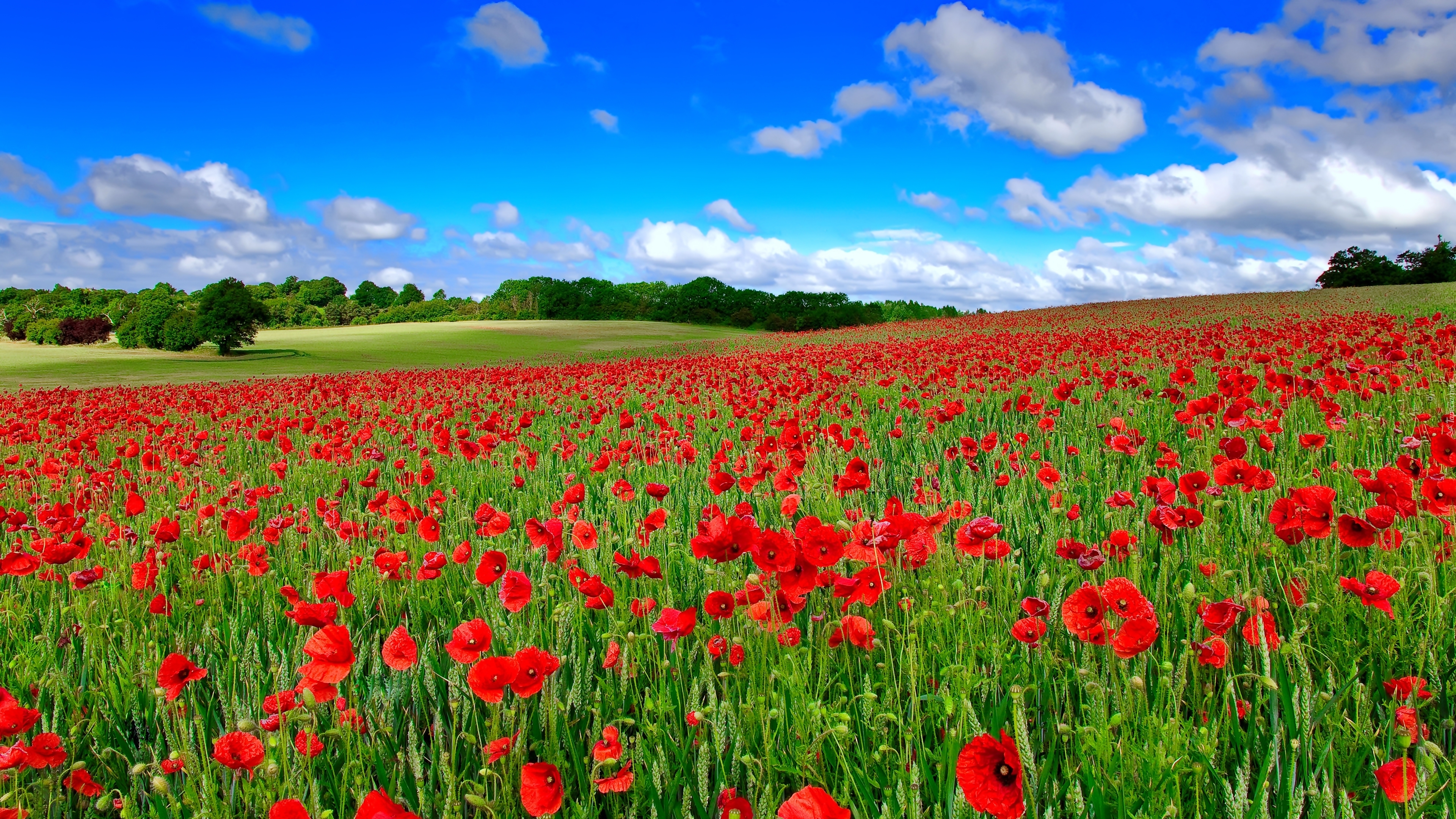 Edytor tapety: Czerwone, Maki, Pola, Niebo