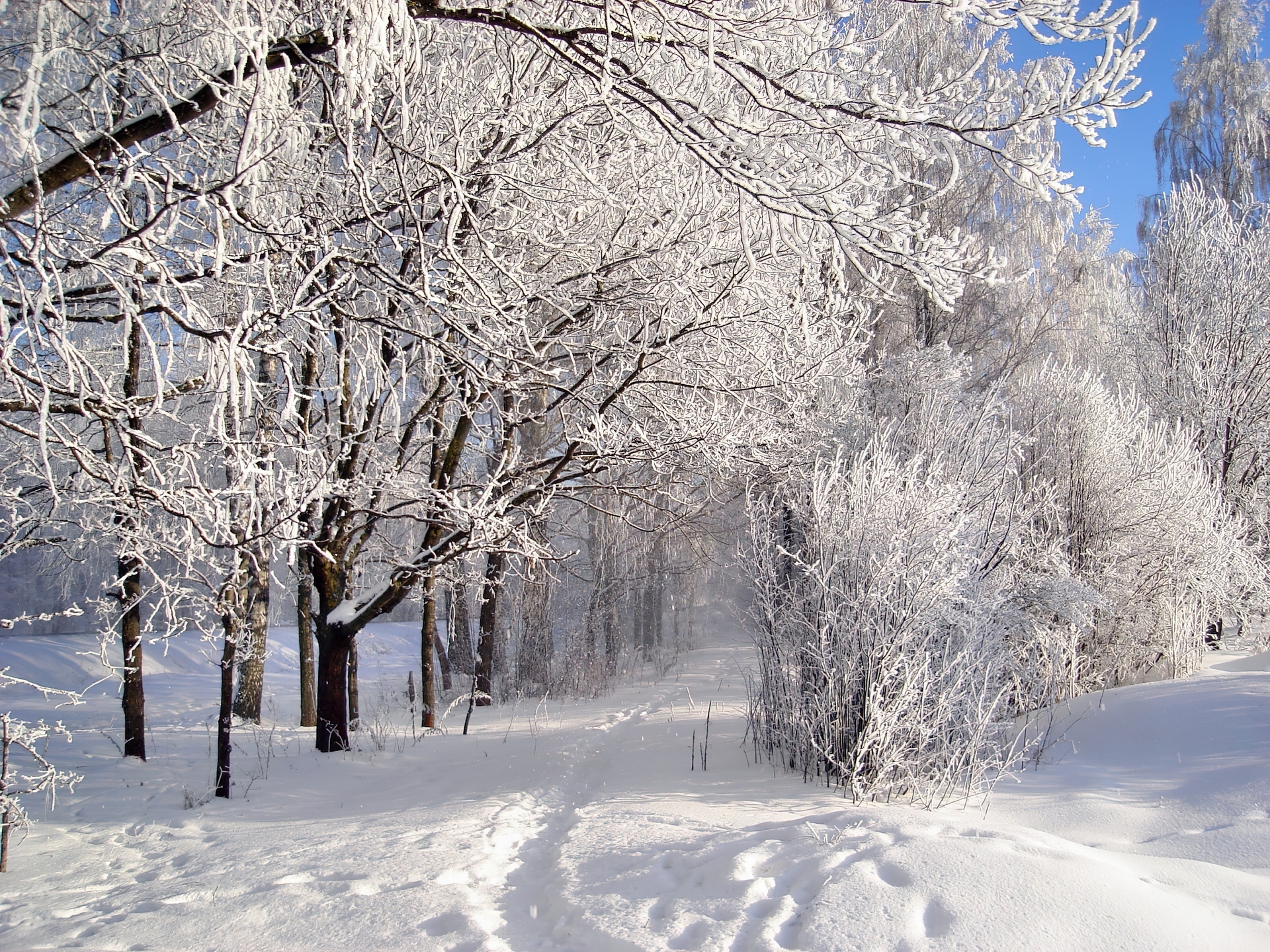 Edytor tapety: Oszronione, Drzewa, Krzewy, Ścieżka, Poranek