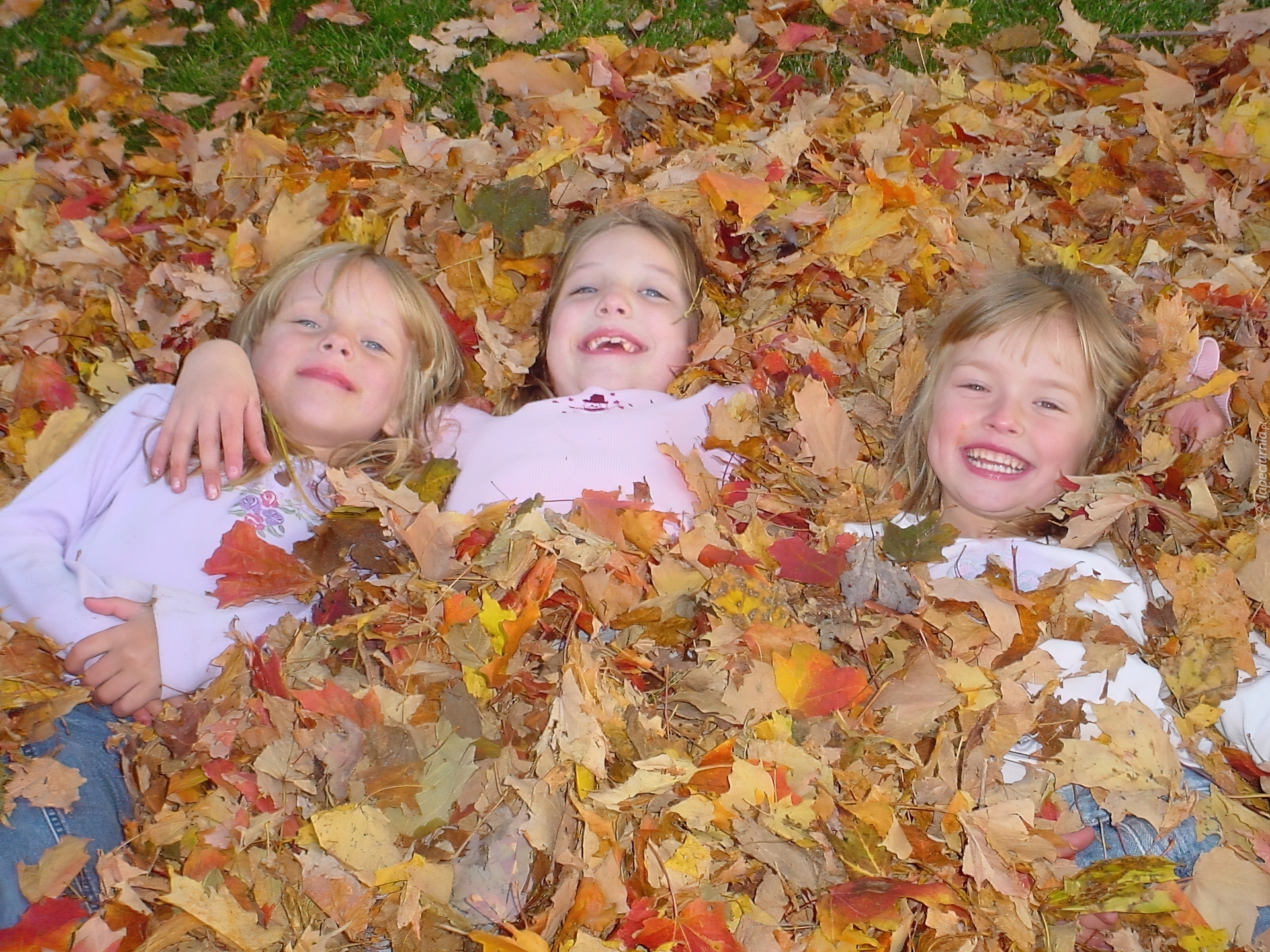 Edytor tapety: Trzy, Dziewczynki, Jesień, Liście, Śmiech