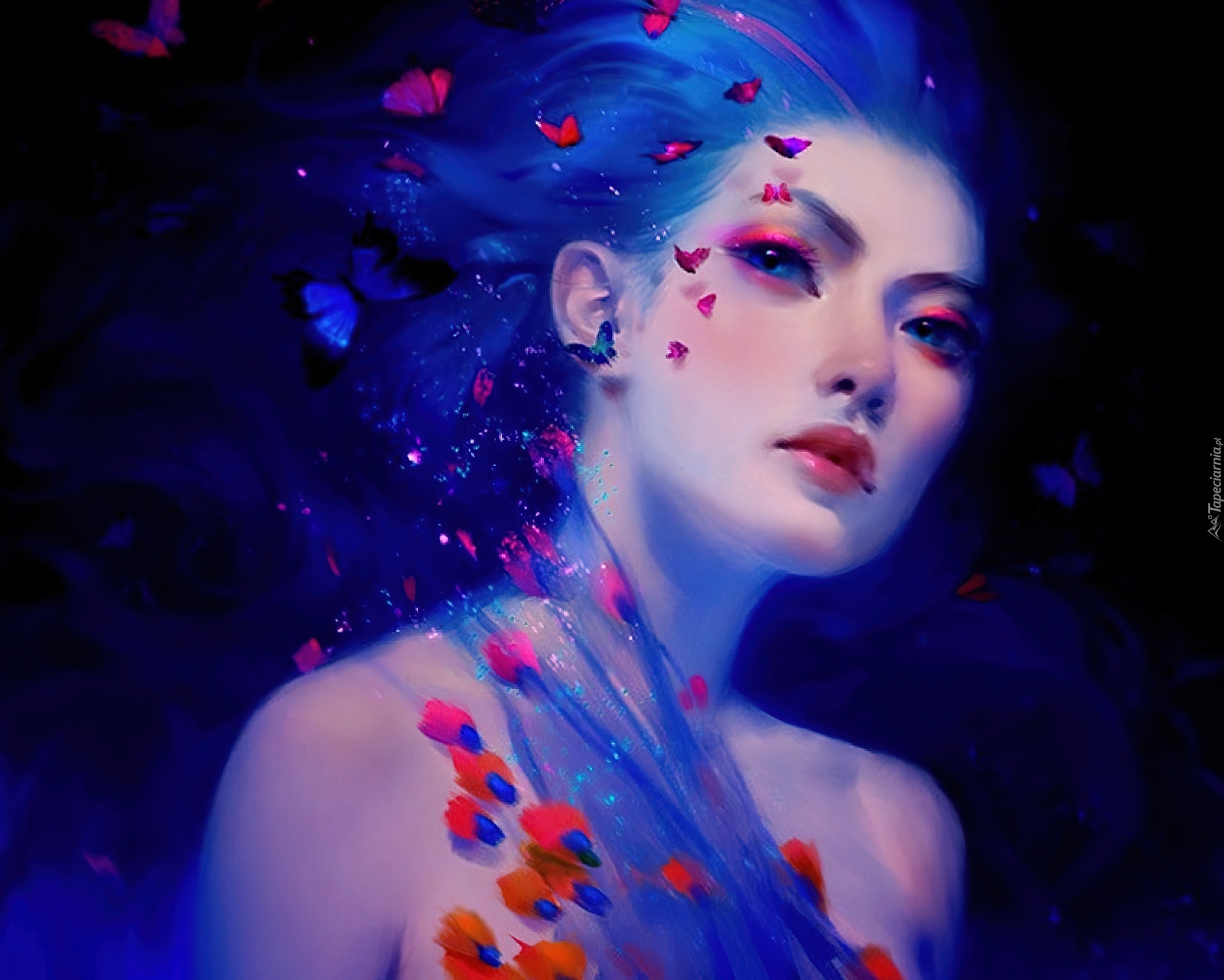 Edytor tapety: Grafika, Fantasy, Kobieta, Świetliki, Motyle