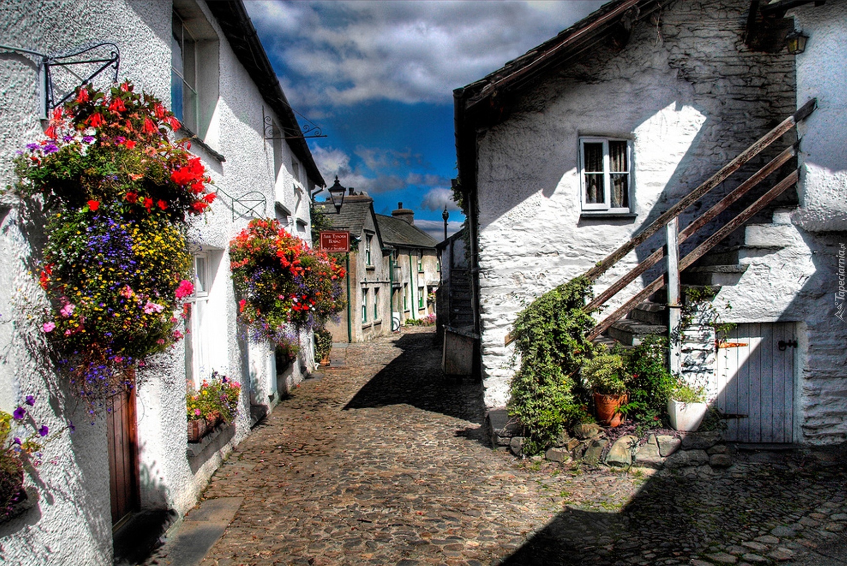 Edytor tapety: Uliczka, Domki, Kwiaty