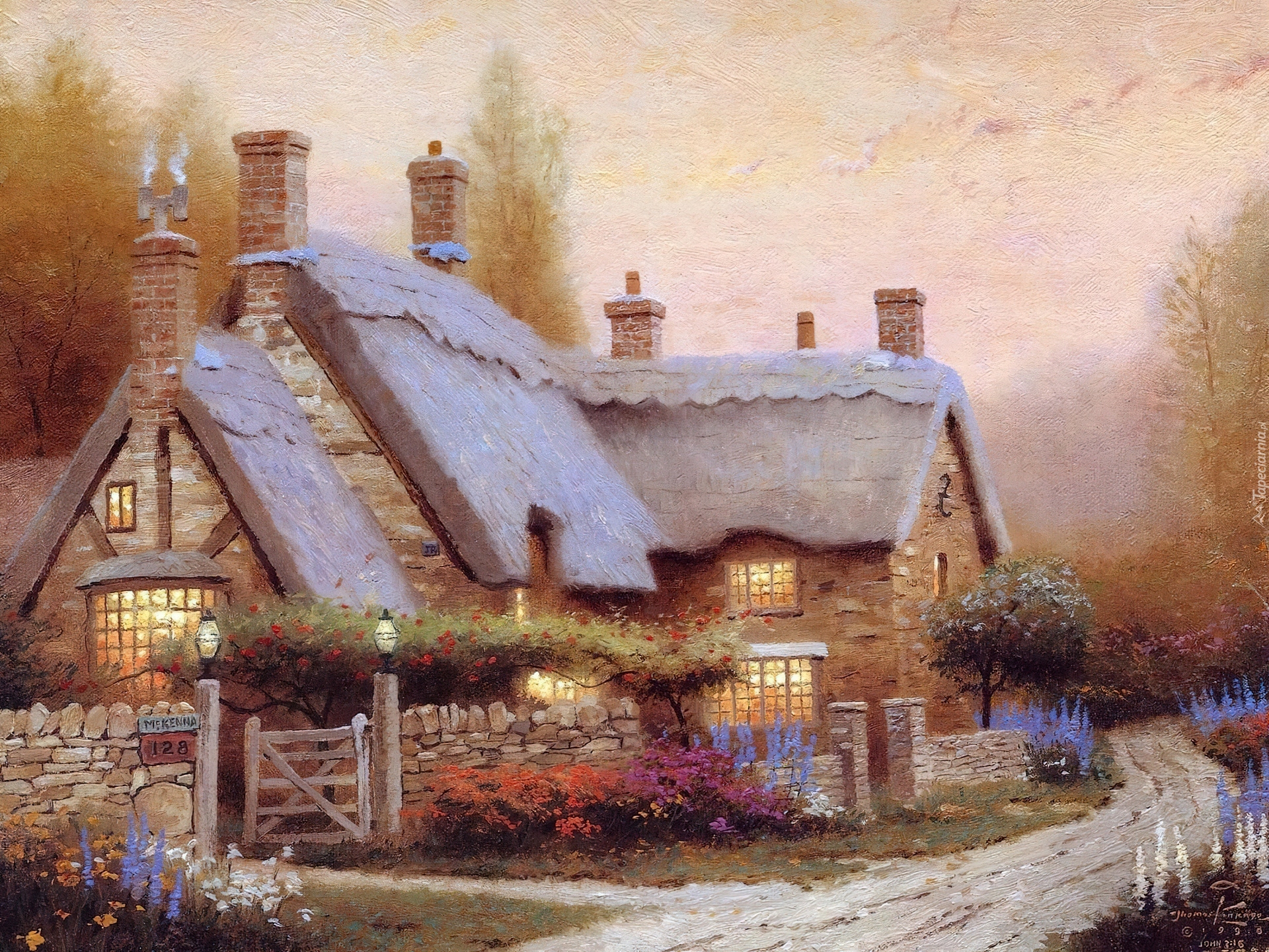 Edytor tapety: Obraz, Dworek, Thomas Kinkade