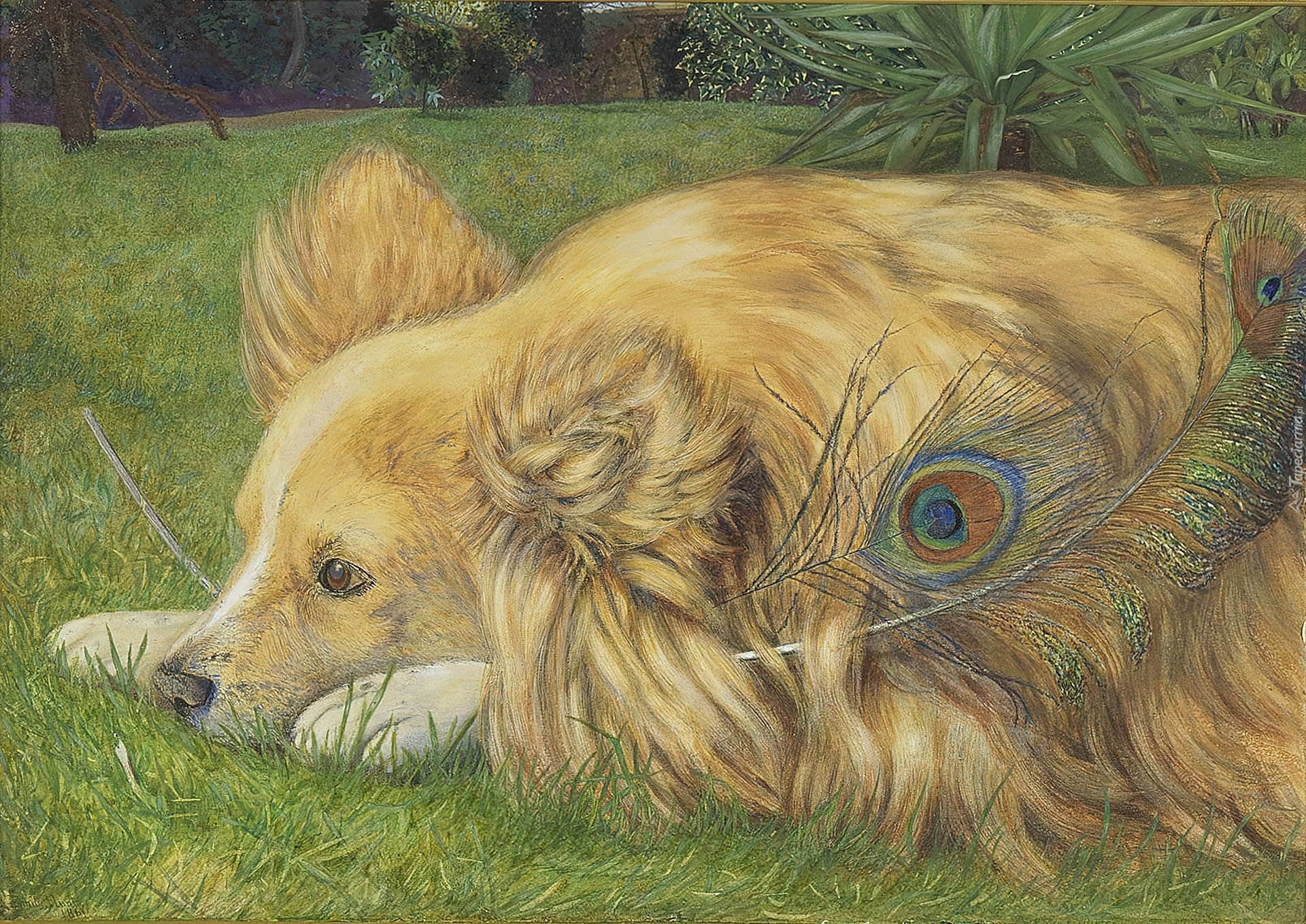 Edytor tapety: Piesek, Pawie, Piórko, Łąka