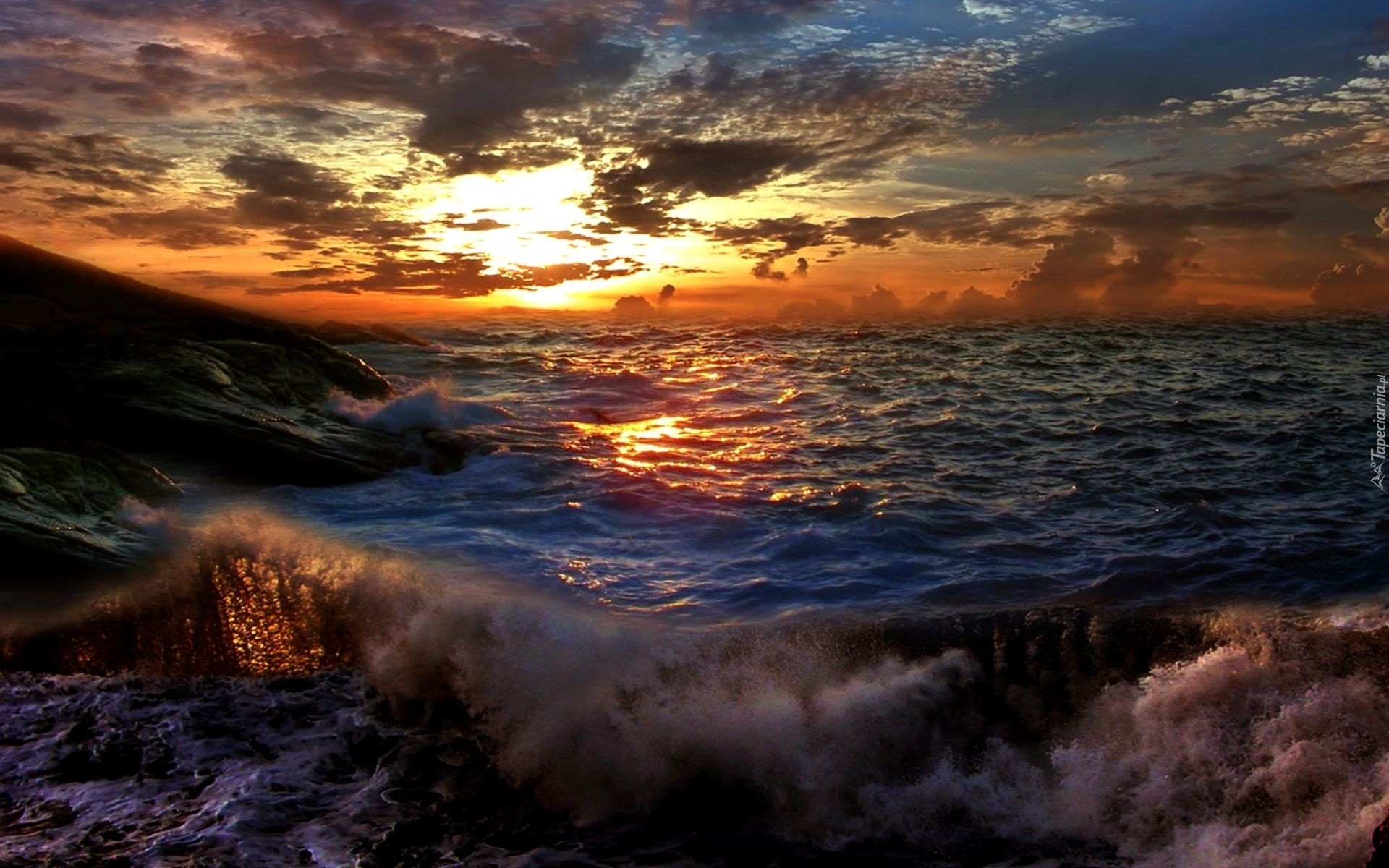 Edytor tapety: Zachód, Słońca, Morze, Fale