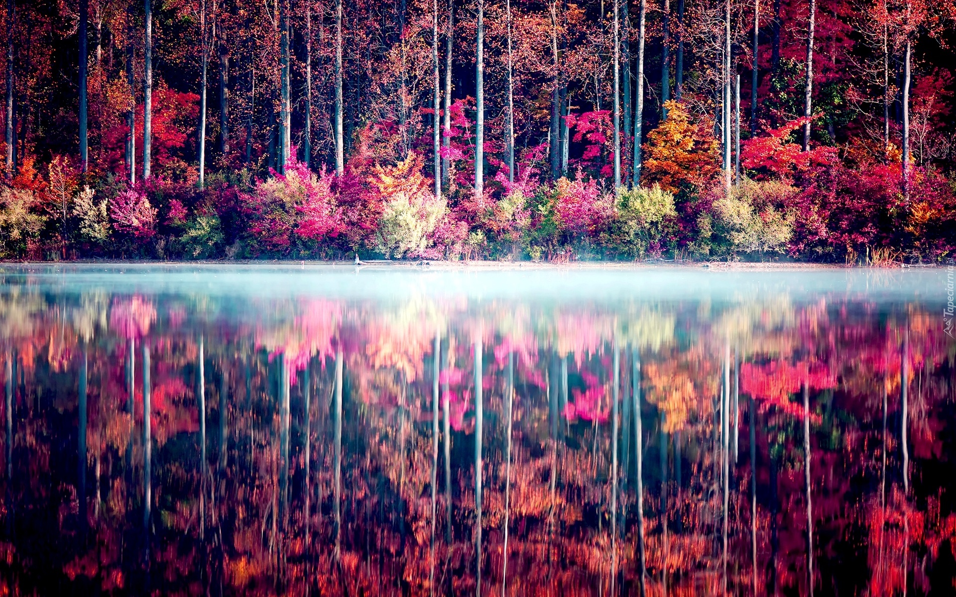 Edytor tapety: Kolorowe, Drzewa, Jezioro, Odbicie