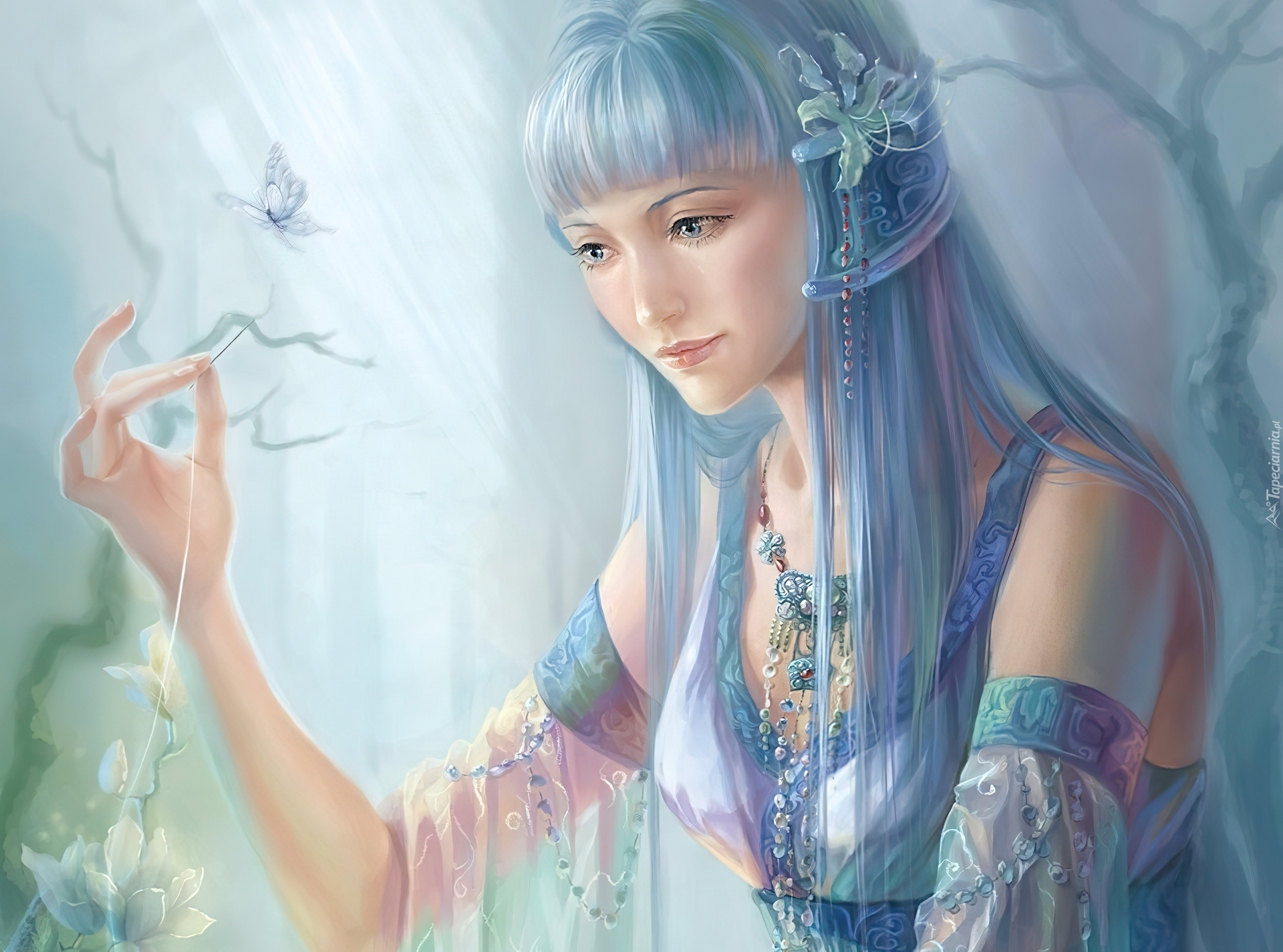 Edytor tapety: Kobieta, Niebieskie, Włosy, Ręka