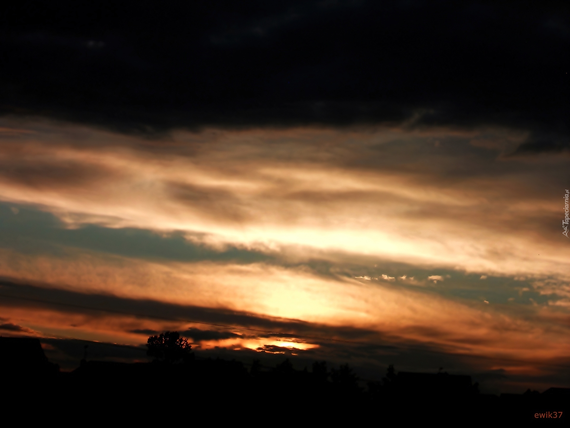 Edytor tapety: Zachmurzone, Niebo, Zachód Słońca