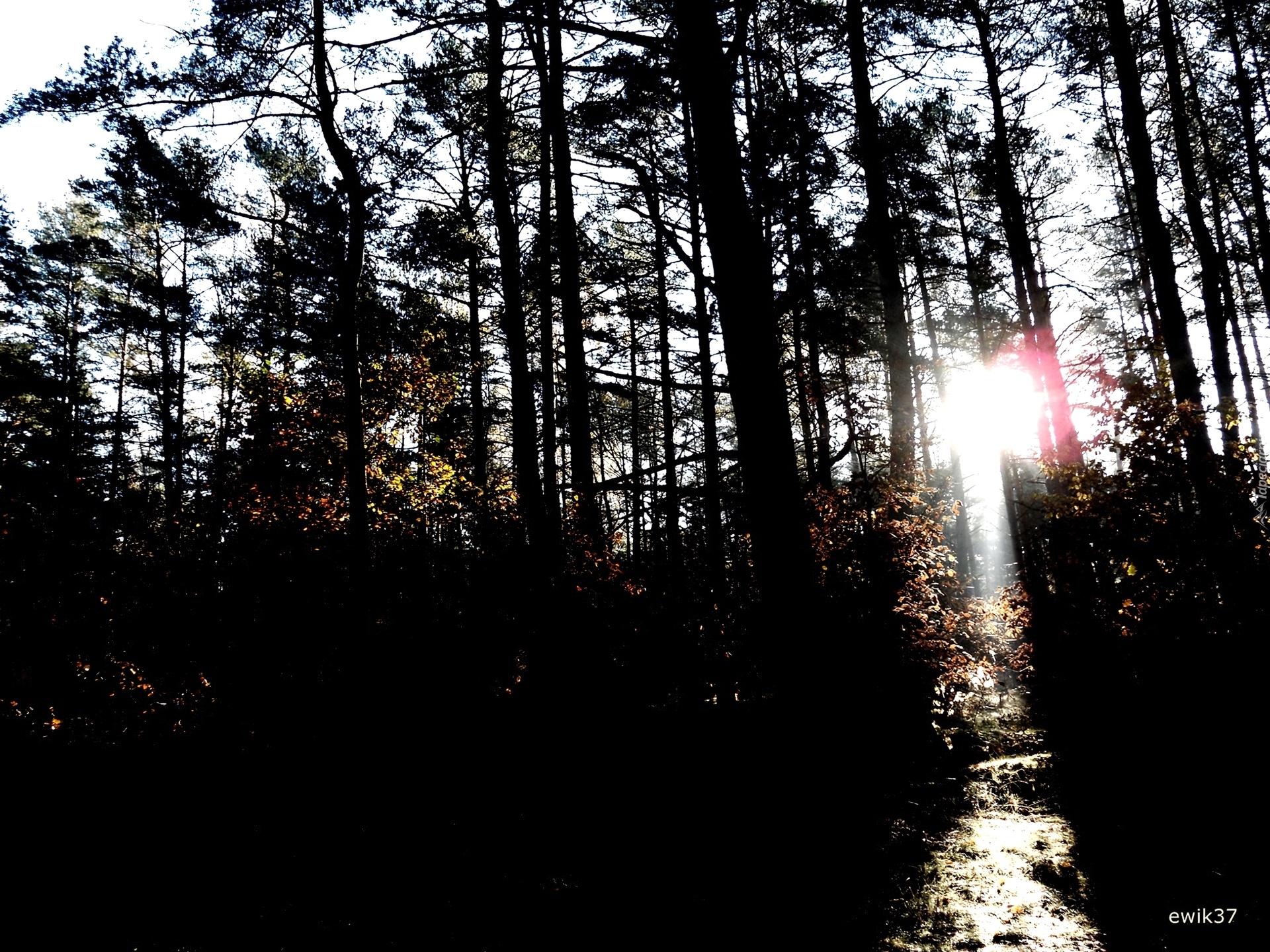 Edytor tapety: Polana, Las, Drzewa, Przebijajace Światło