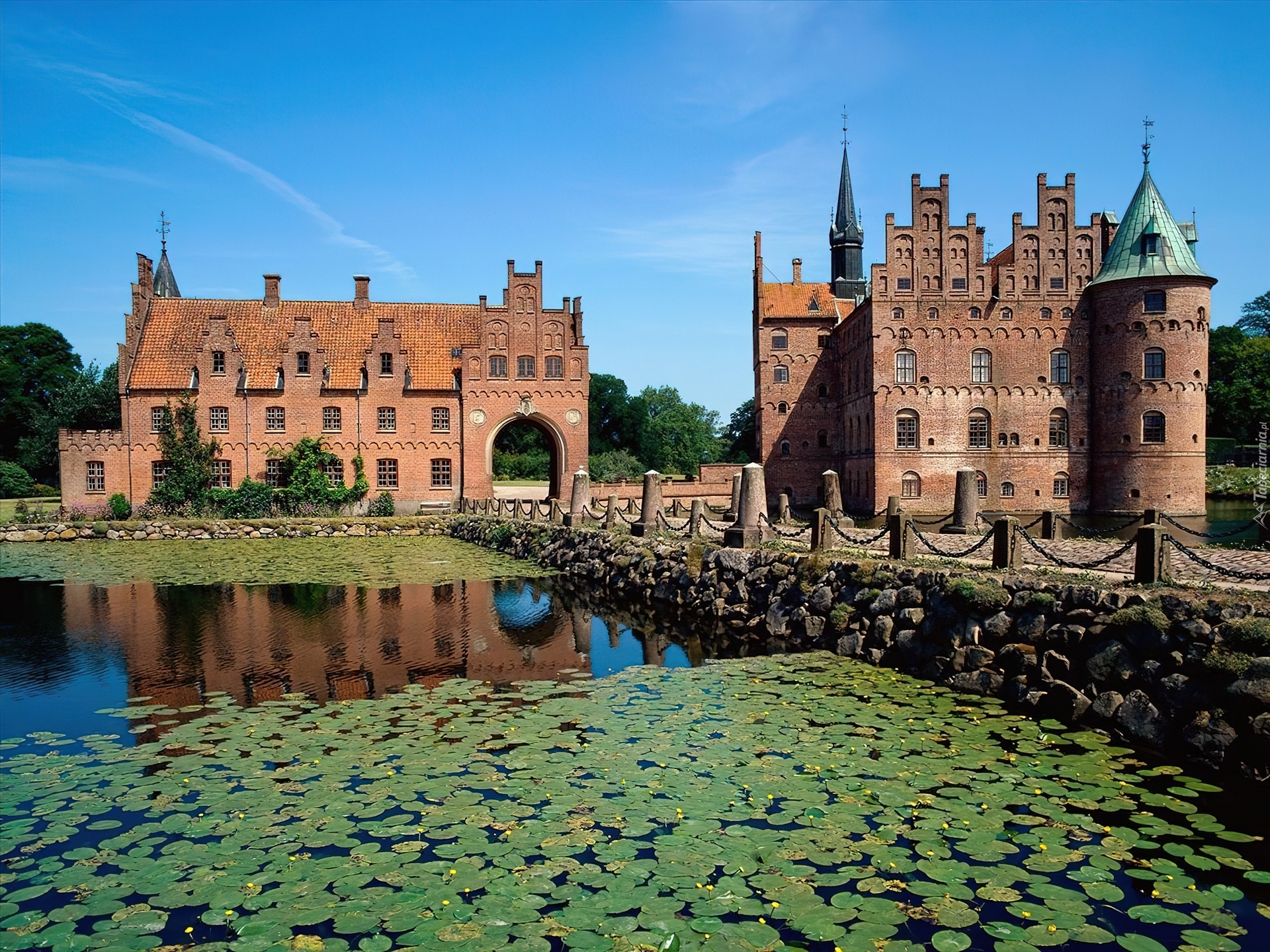 Edytor tapety: Zamek Egeskov, Staw, Lilie wodne, Kvaerndrup, Wyspa Fionia, Dania