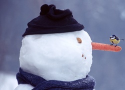 Edytor tapety: Ptaszek, Sikorka, Bałwan, Zima