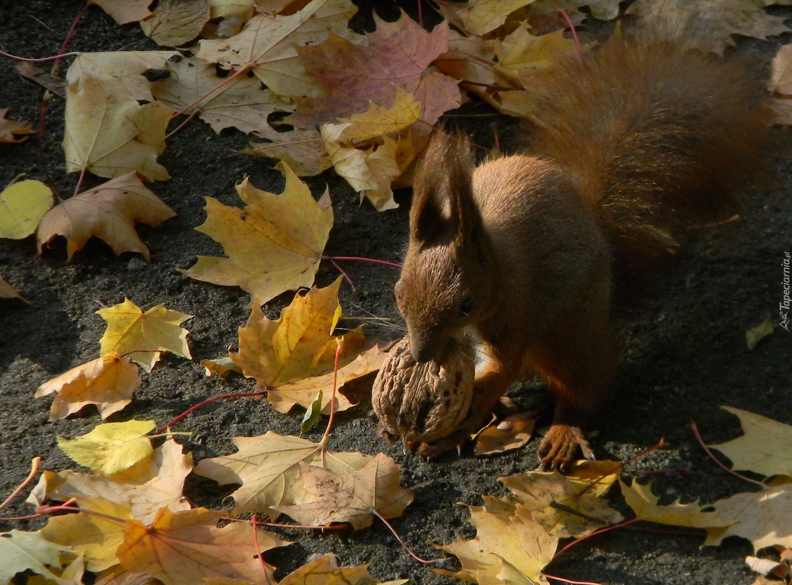 Edytor tapety: Wiewiórka, Orzech, Liście