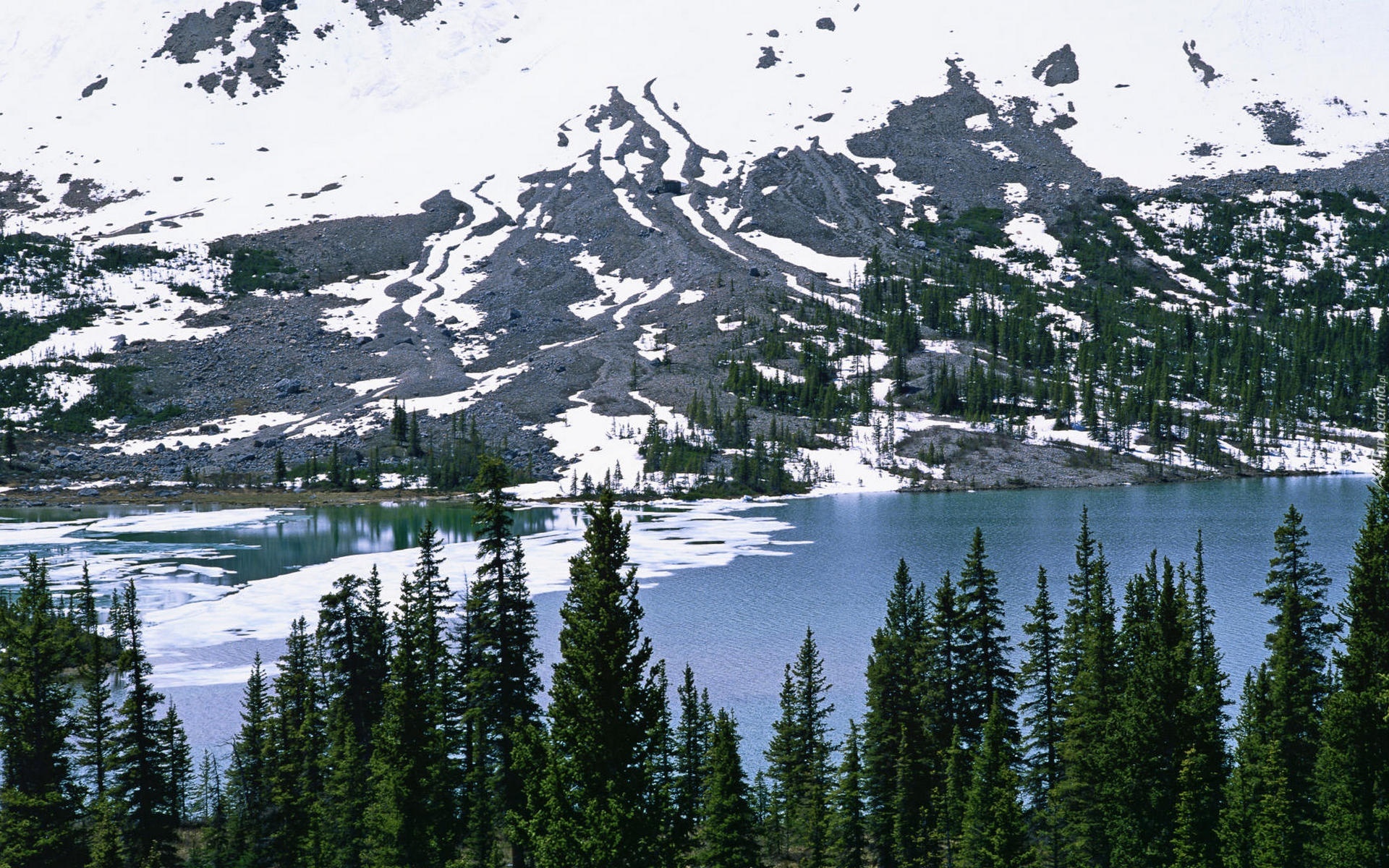 Edytor tapety: Góry, Rzeka, Świerki, Zima