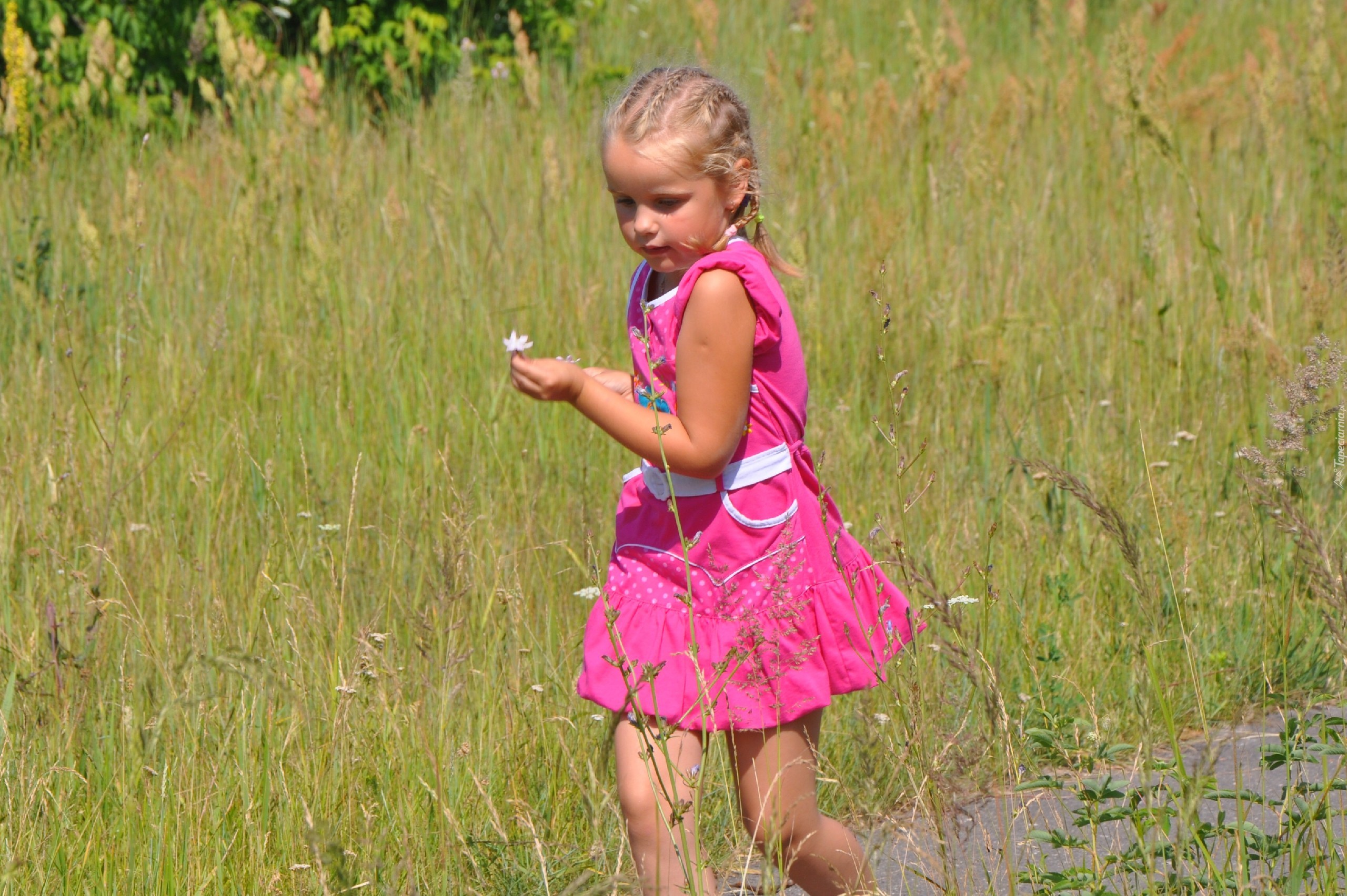 Edytor tapety: Dziewczynka, Łąka, Kwiatek