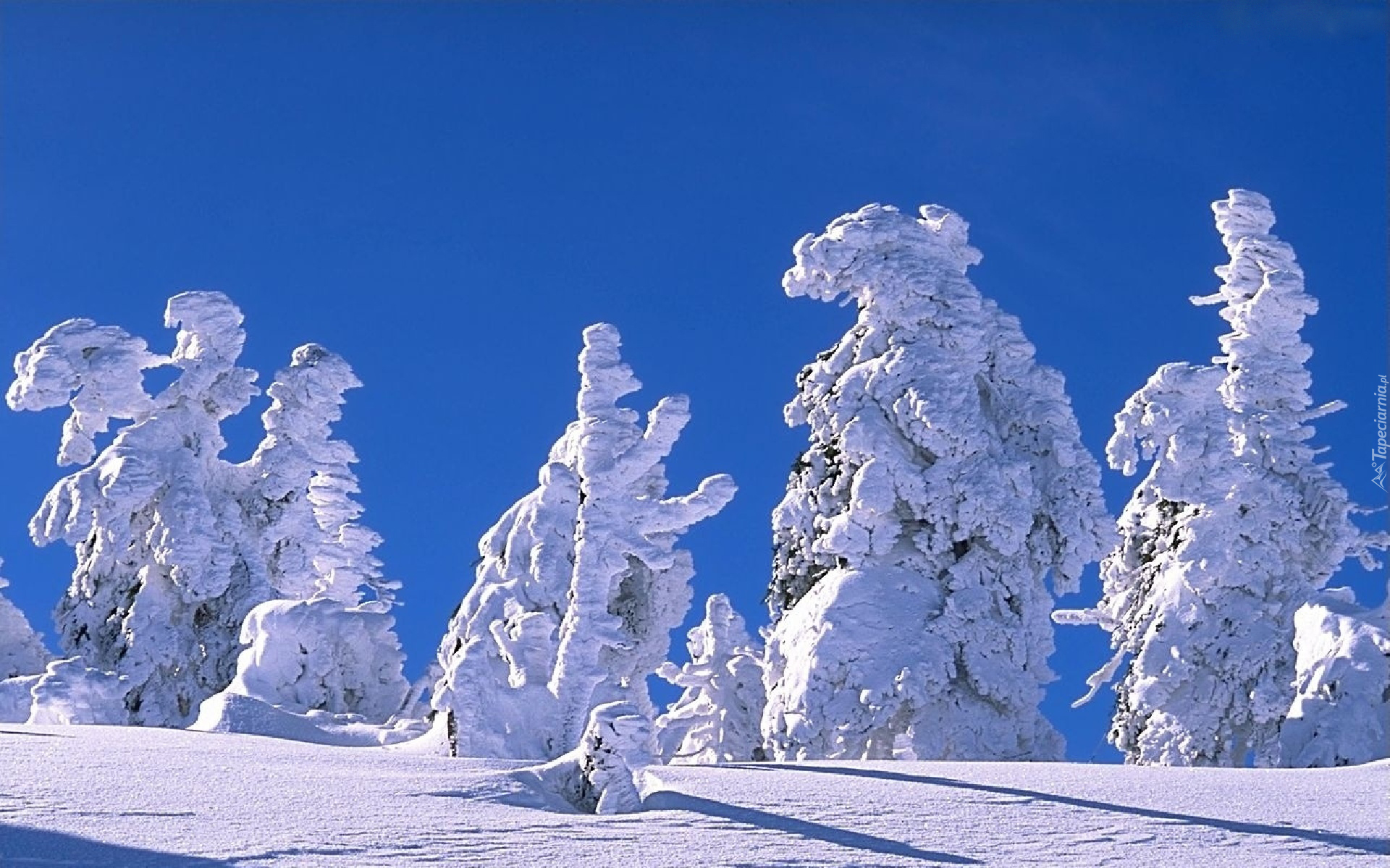 Edytor tapety: Zima, Ośnieżone, Drzewa, Błękitne, Niebo