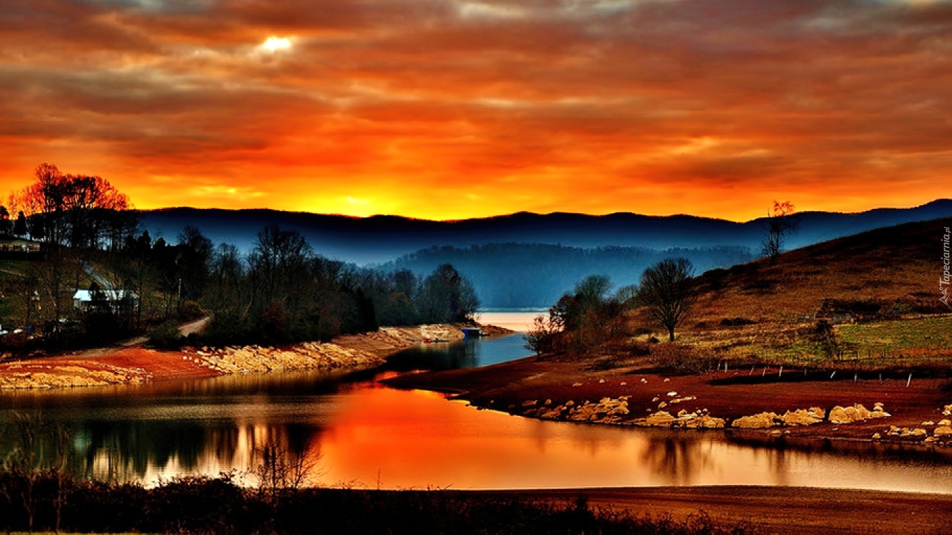Edytor tapety: Góry, Kolorowe, Niebo, Chmury, Zachód Słońca