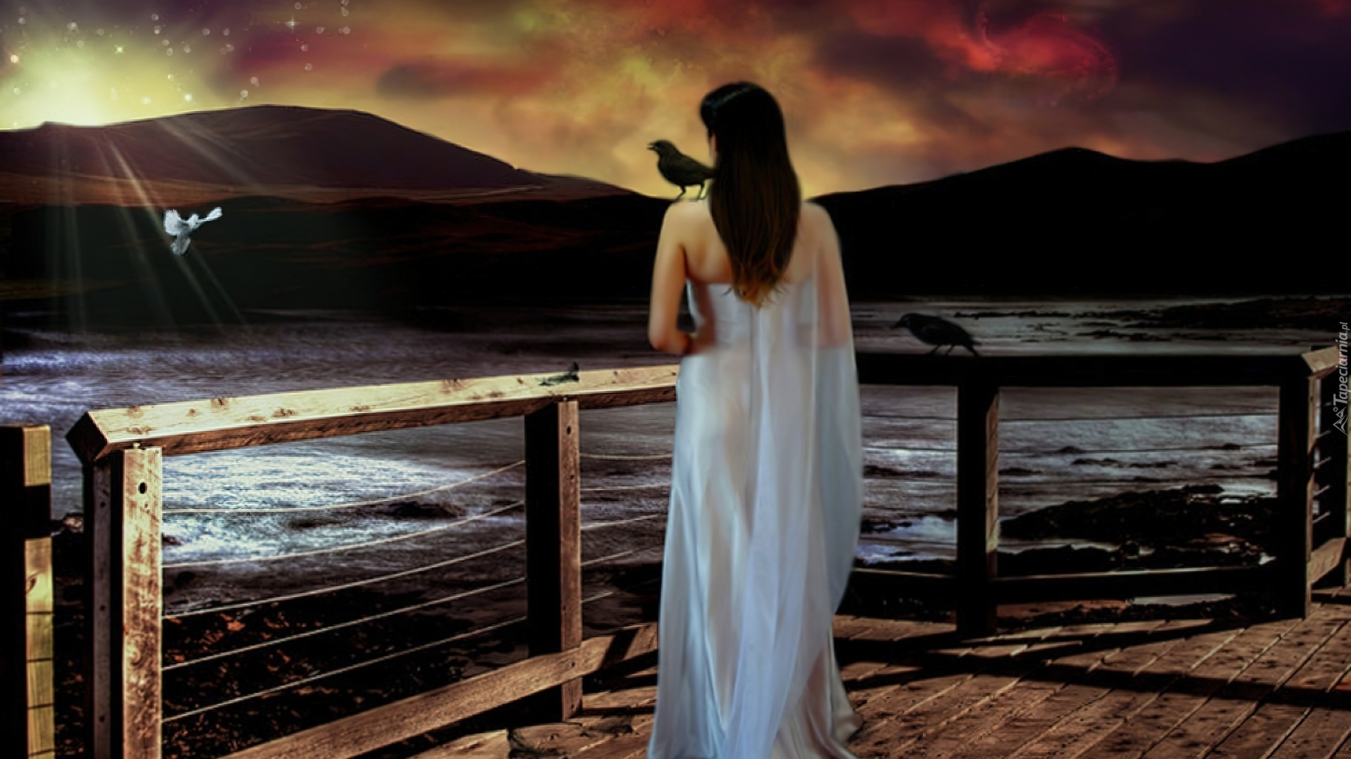 Edytor tapety: Grafika, Fantasy, Kobieta, Pomost, Morze