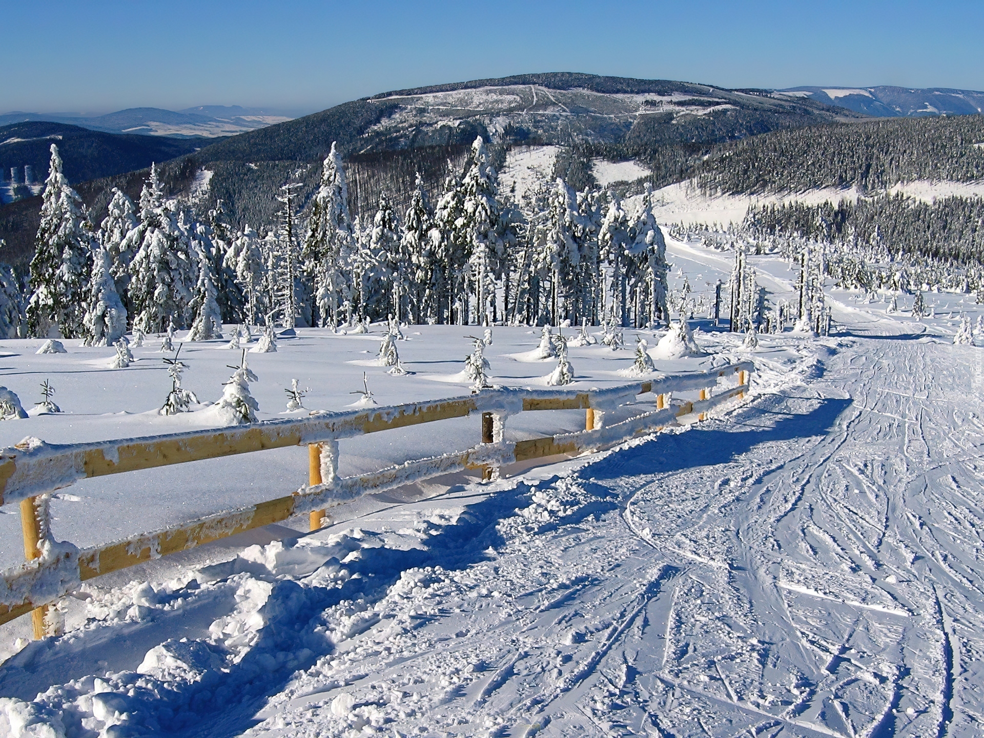 Edytor tapety: Góry, Lasy, Droga, Ogrodzenie