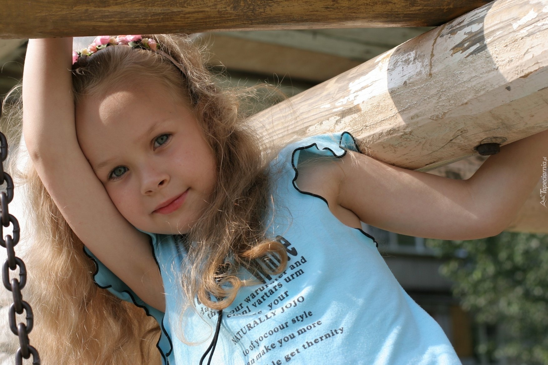 Edytor tapety: Dziewczynka, Blondynka, Drewniane, Belki