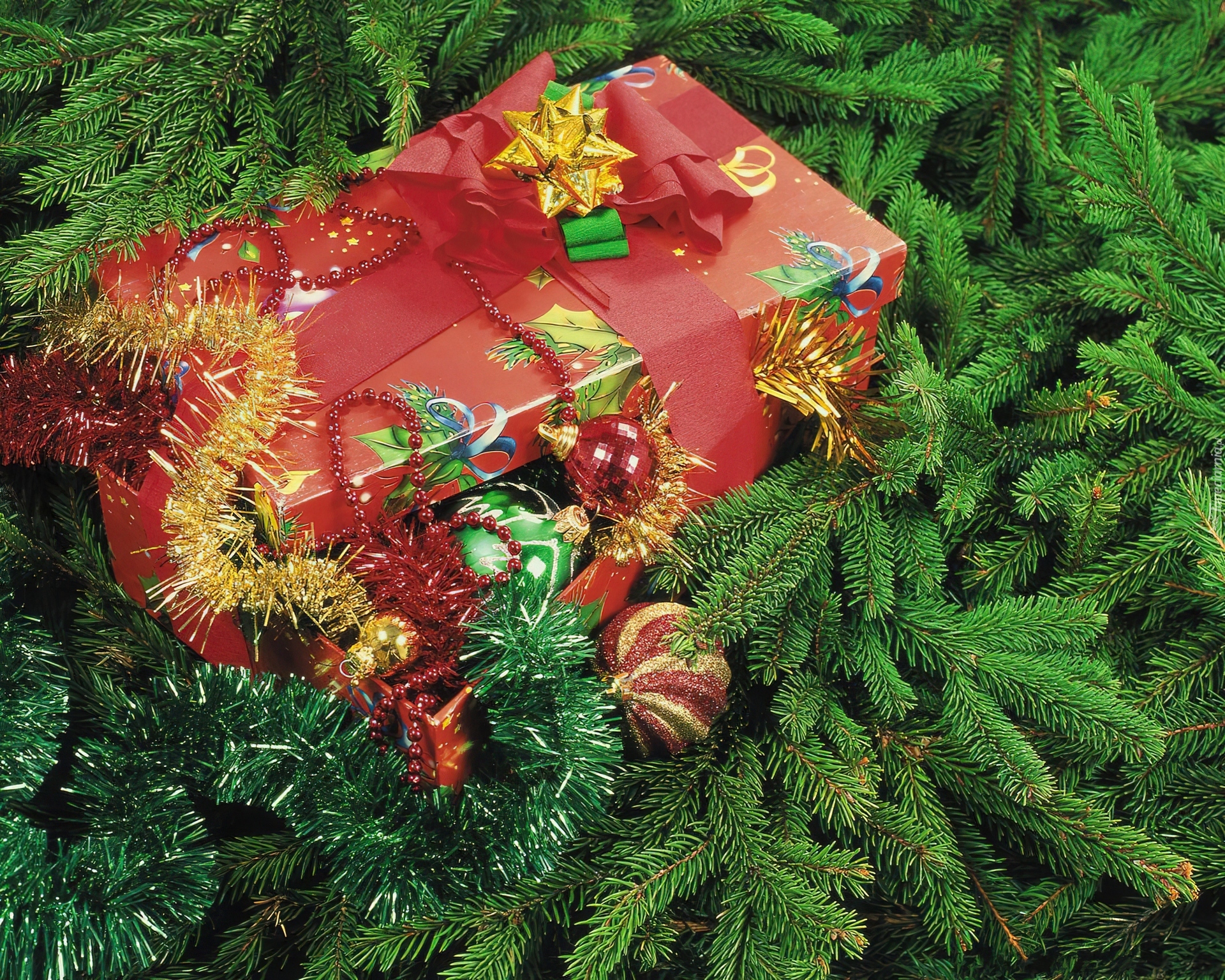 Edytor tapety: Prezent, Choinka, Igliwie