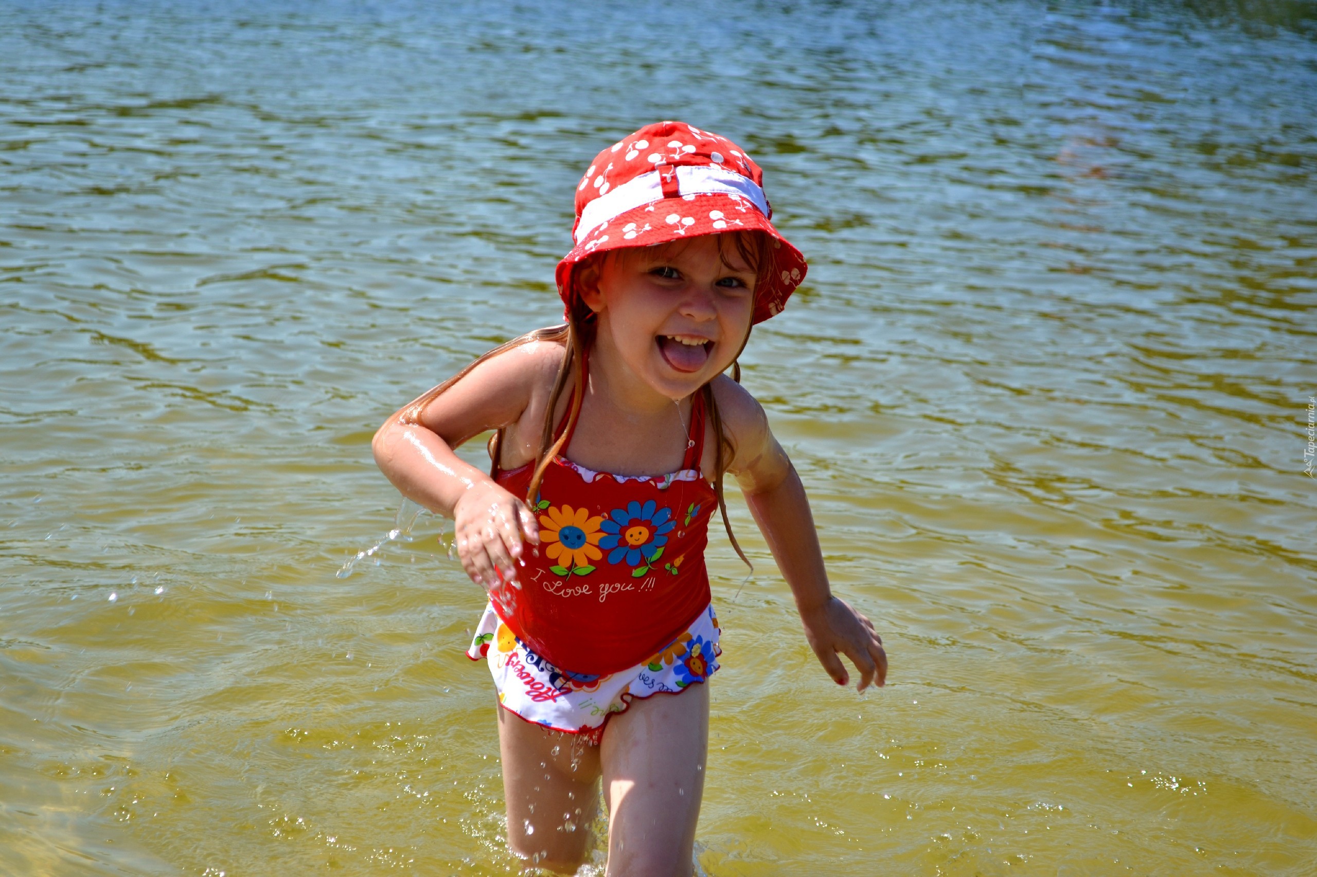 Edytor tapety: Szczęśliwa, Dziewczynka, Kąpiel, Morze