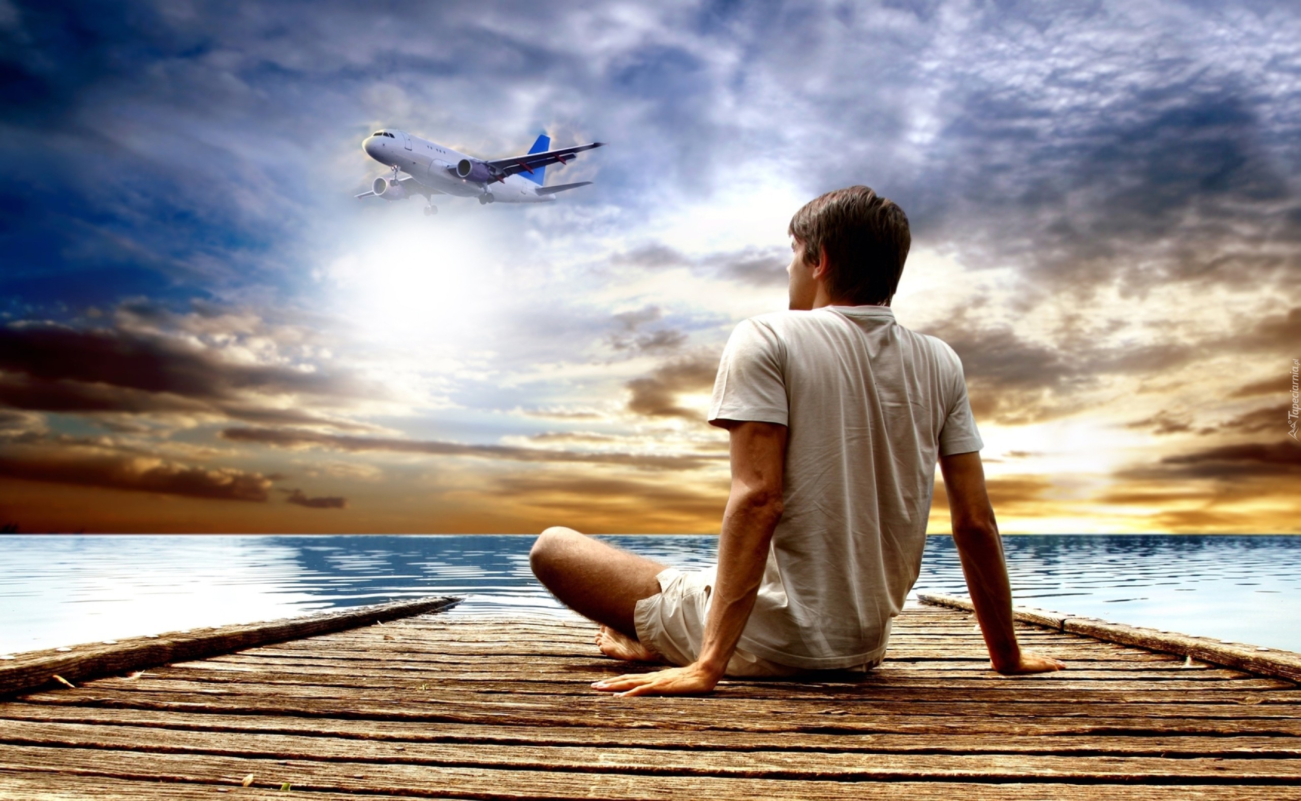 Edytor tapety: Samolot, Morze, Mężczyzna, Na, Molo