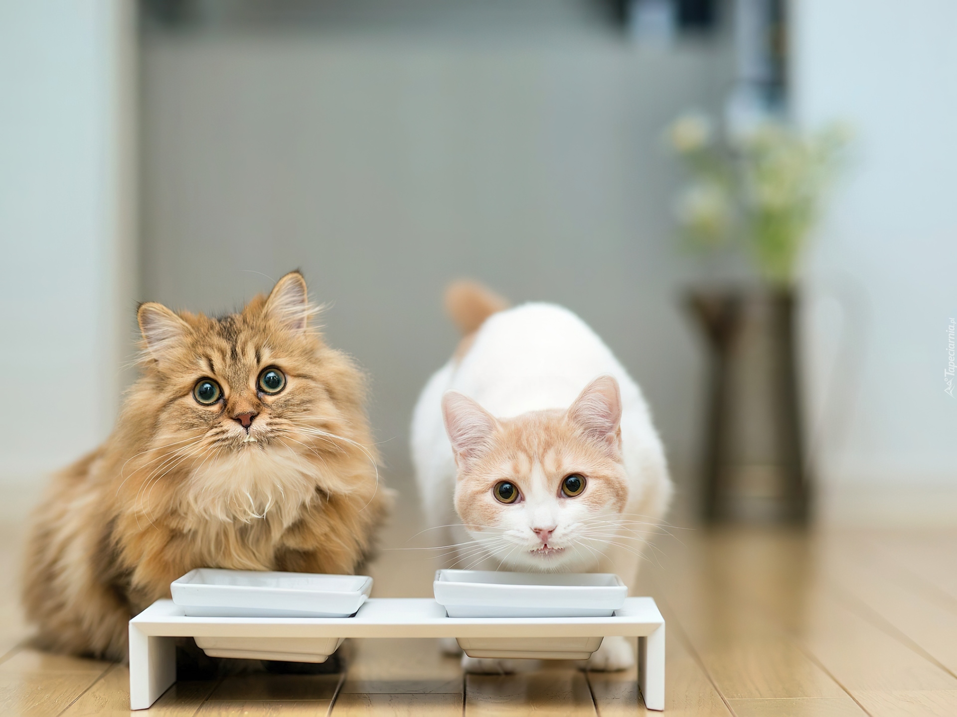 Edytor tapety: Kotki, Miseczki, Mleko