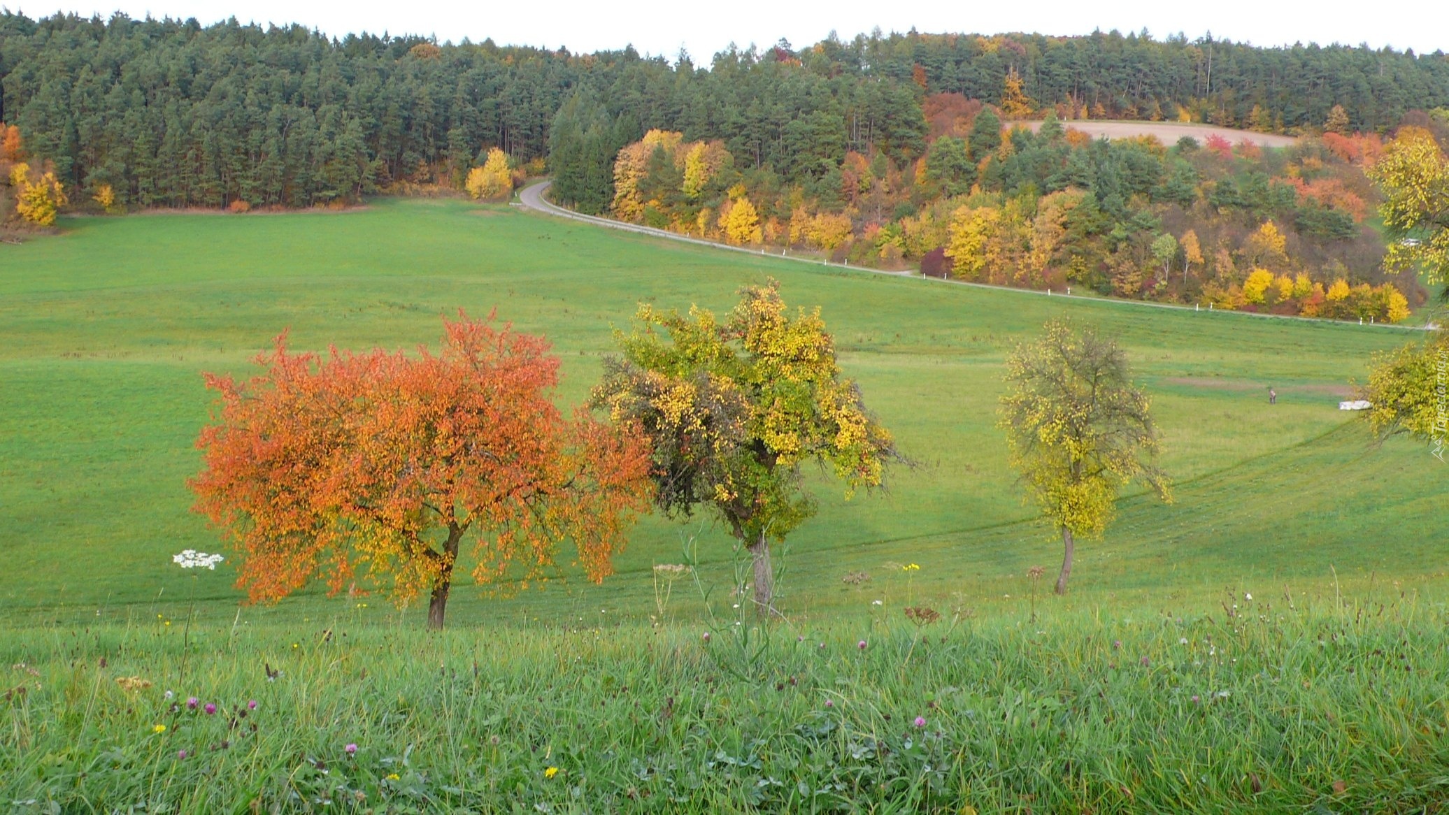 Edytor tapety: Łąka, Drzewa, Las, Droga