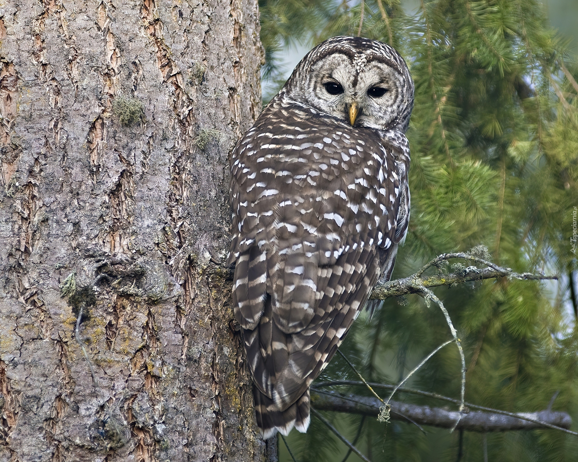 Edytor tapety: Szara, Sowa, Siedząca, Na, Drzewie