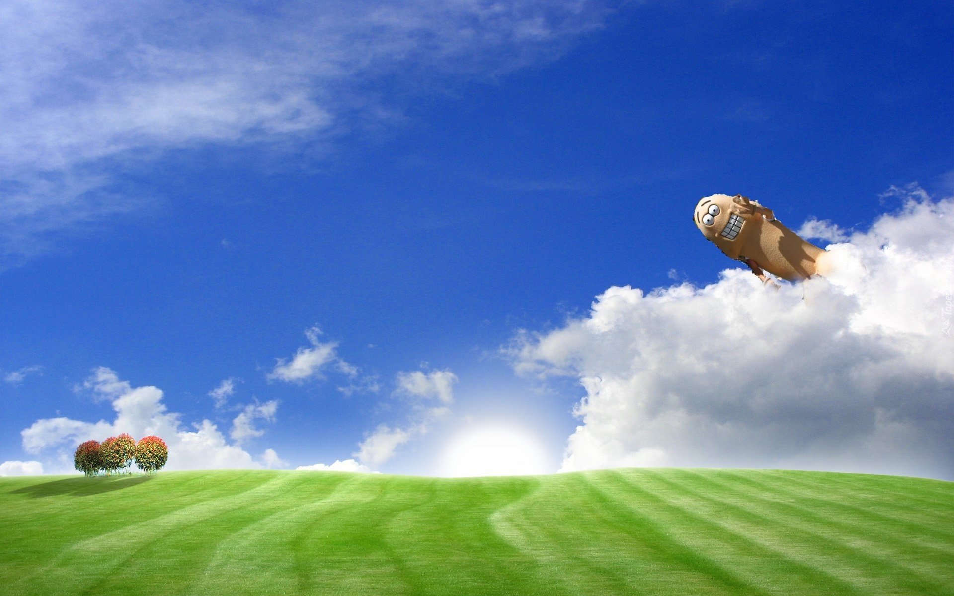 Edytor tapety: Potworek, W, Chmurach, Łąka