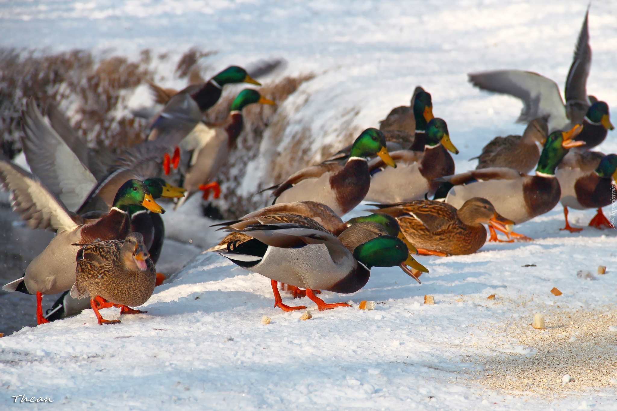 Edytor tapety: Kaczki, Krzyżówki, Śnieg, Zima, Mróz