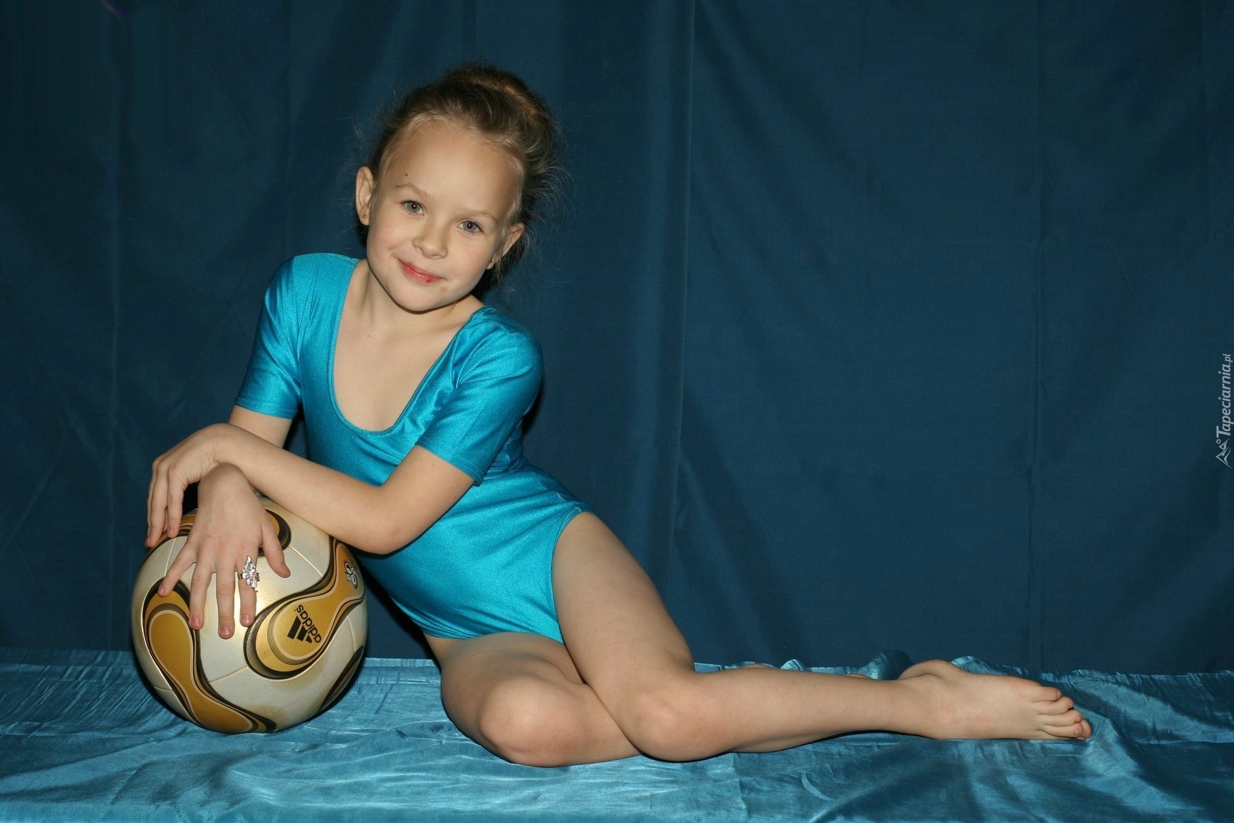 Edytor tapety: Dziewczynka, Uśmiech, Piłka, Niebieski, Strój