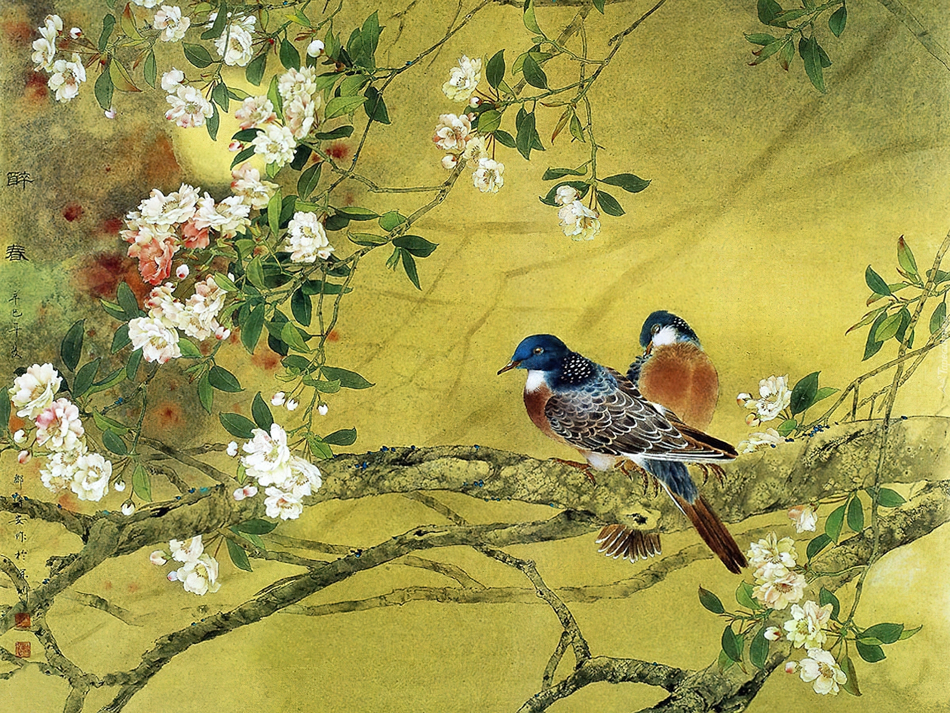 Edytor tapety: Obraz, Ptaszki, Kwiaty