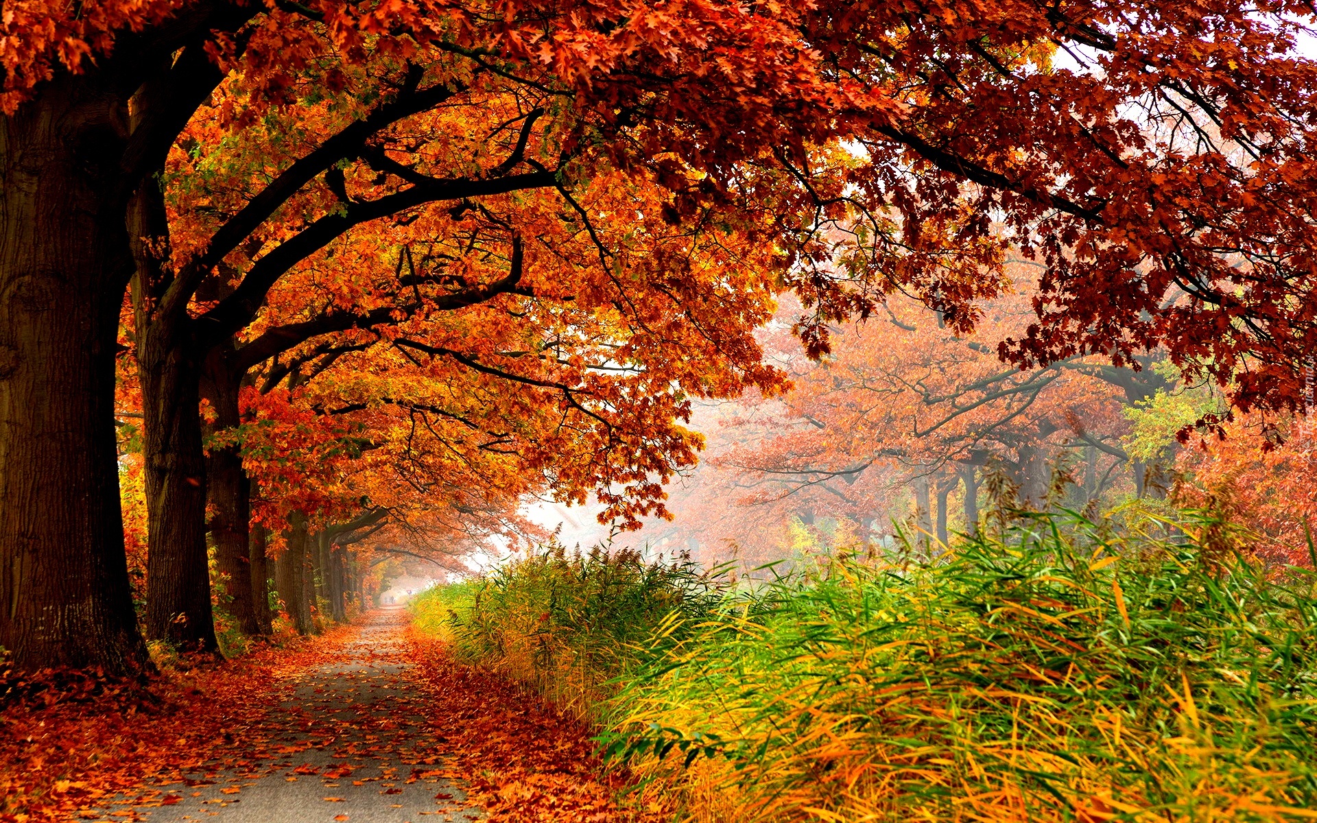 Edytor tapety: Kolorowe, Drzewa, Liście, Alejka