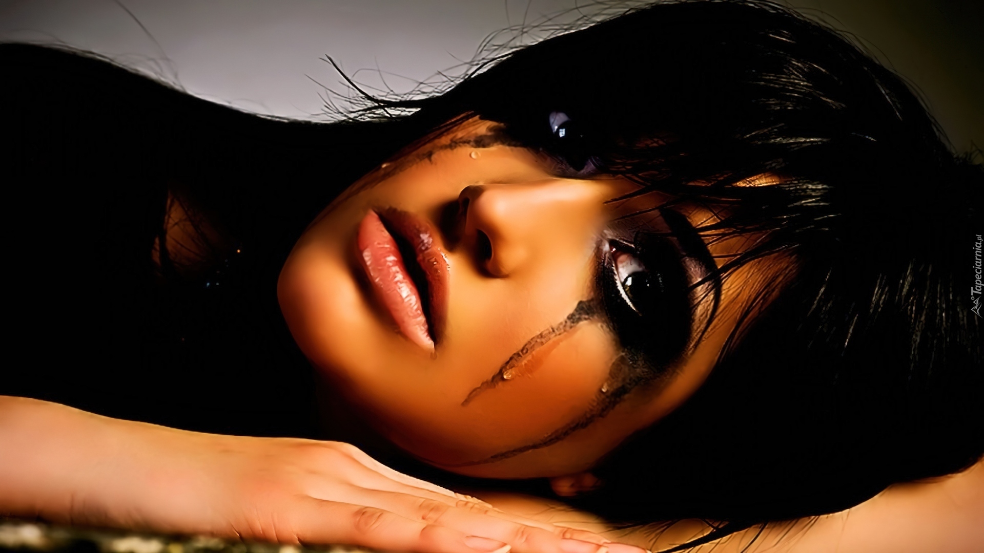 Edytor tapety: Kobieta, Brunetka, Rozmazany, Makijaż, Łzy