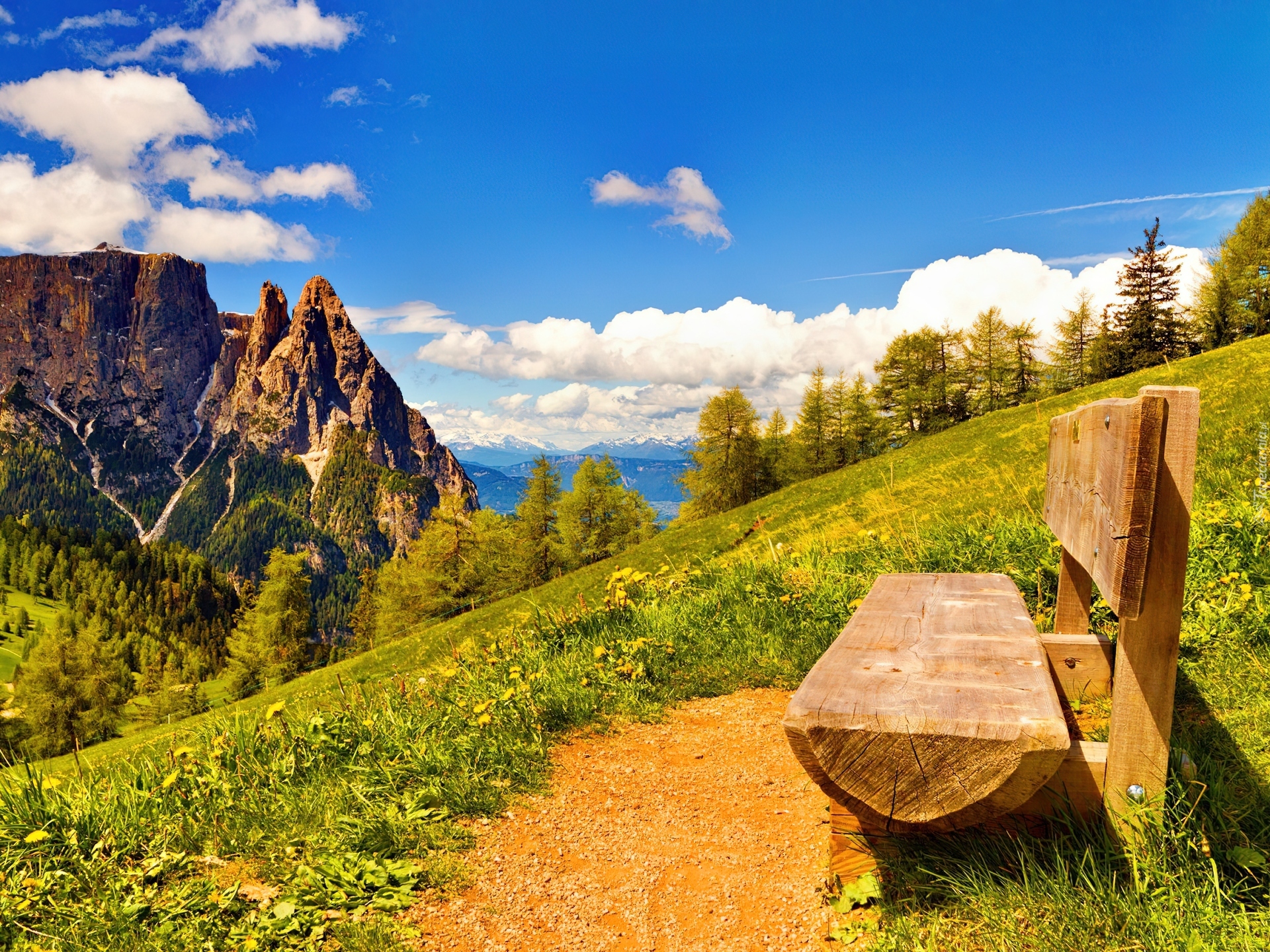 Edytor tapety: Góry, Łąka, Ławka