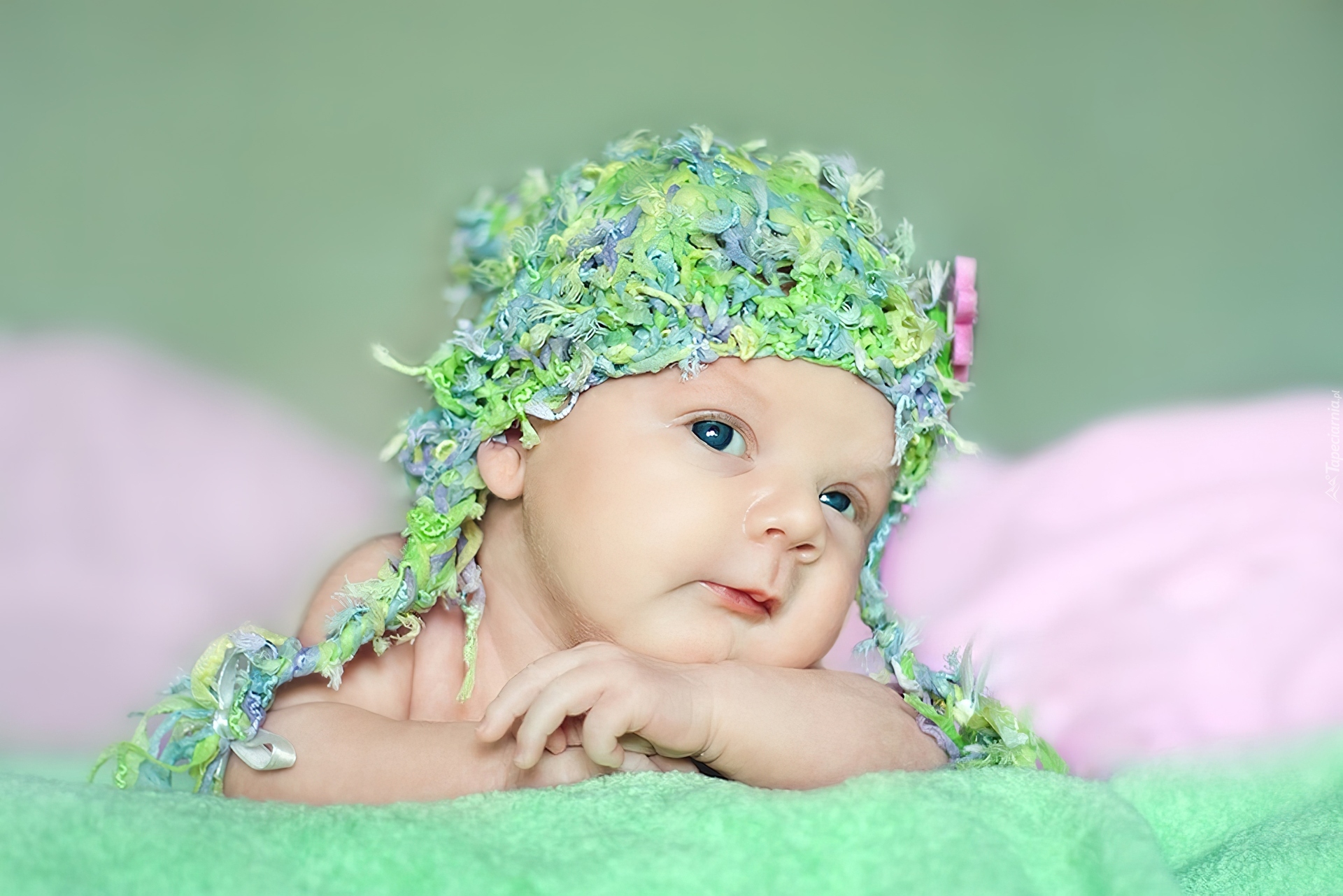Edytor tapety: Dziecko, Zielona, Czapeczka