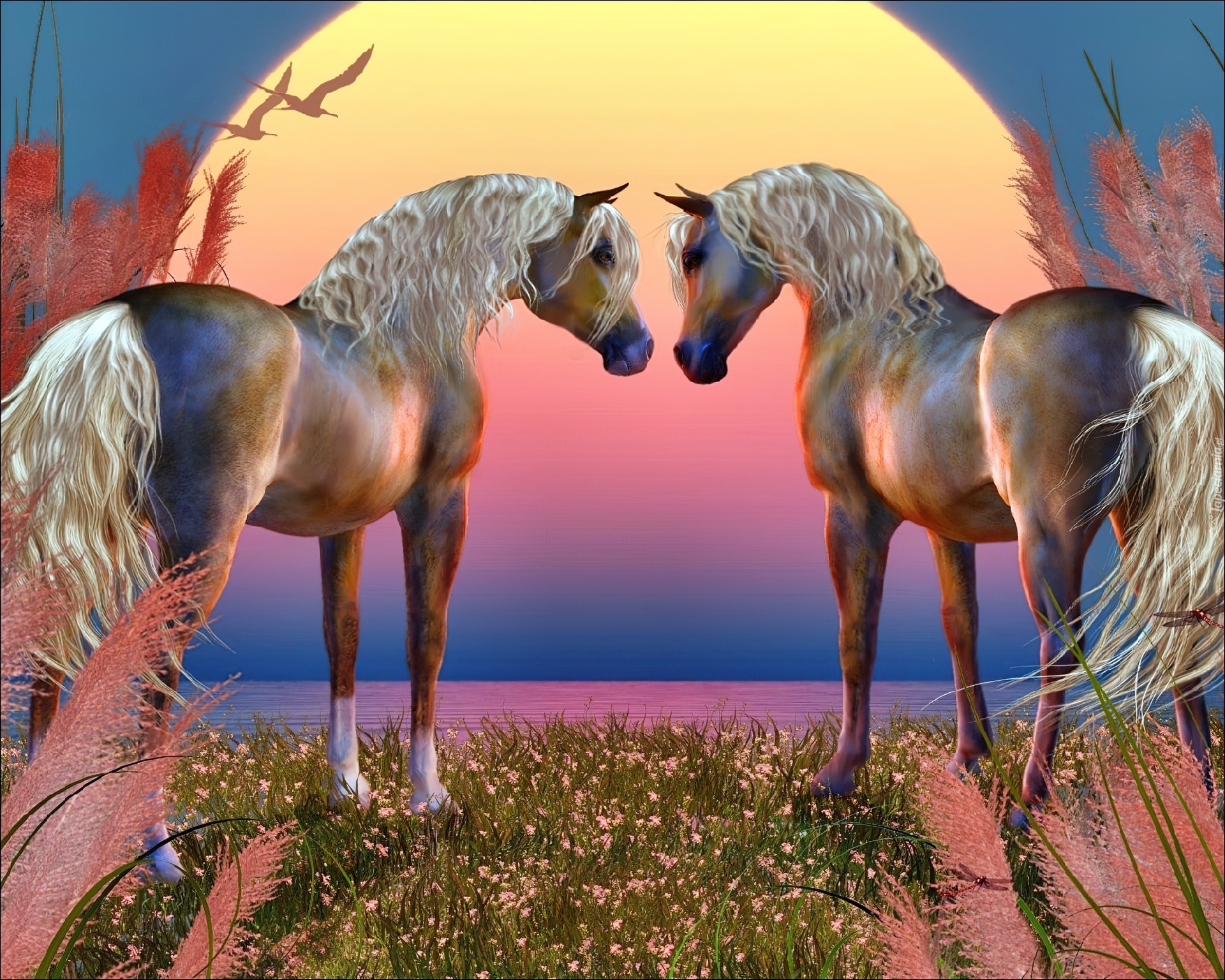 Edytor tapety: Konie, Zachód, Słońca, Grafika