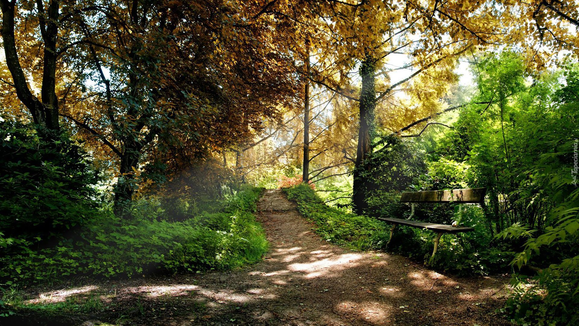 Edytor tapety: Park, Ścieżka, Ławeczka, Drzewa