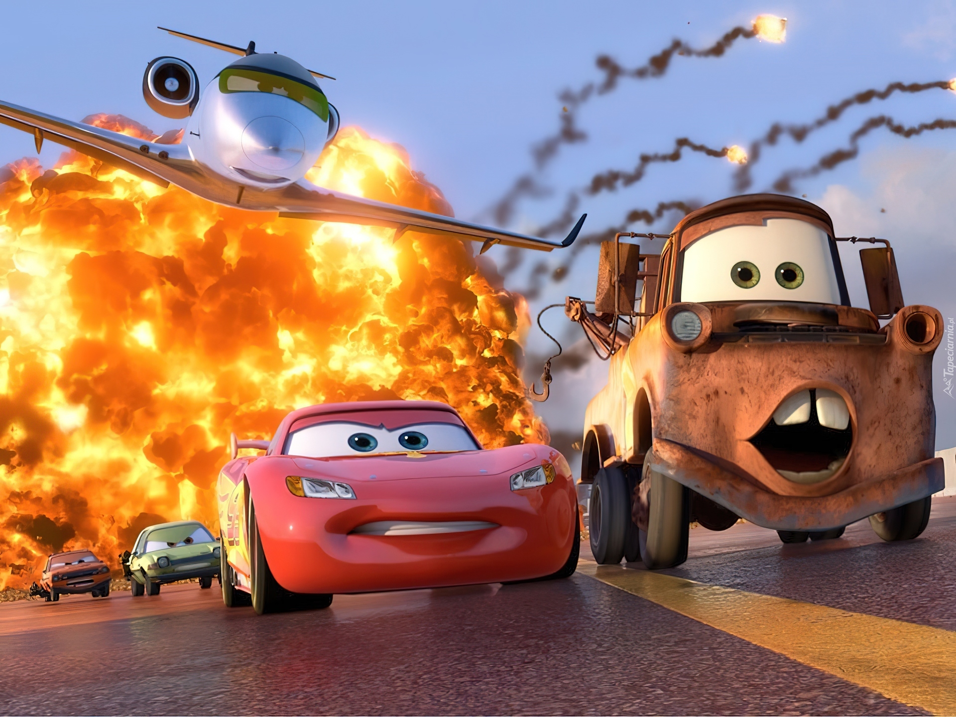 Edytor tapety: Cars, Auta, Zygzak, McQueen, Samolot, Pożar