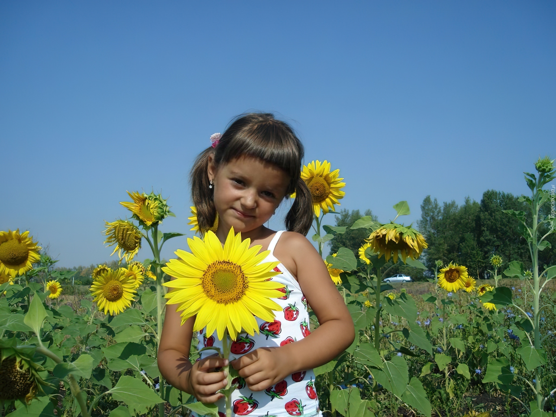 Edytor tapety: Dziewczynka, Słoneczniki, Kucyki