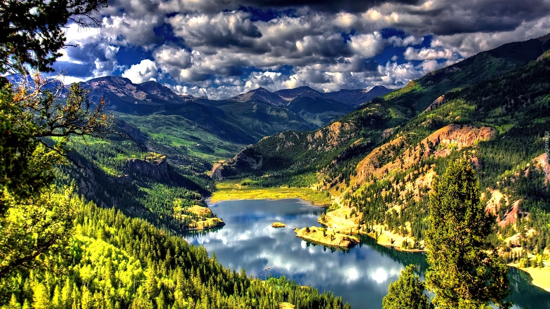 Edytor tapety: Góry, Lasy, Jezioro, Chmury